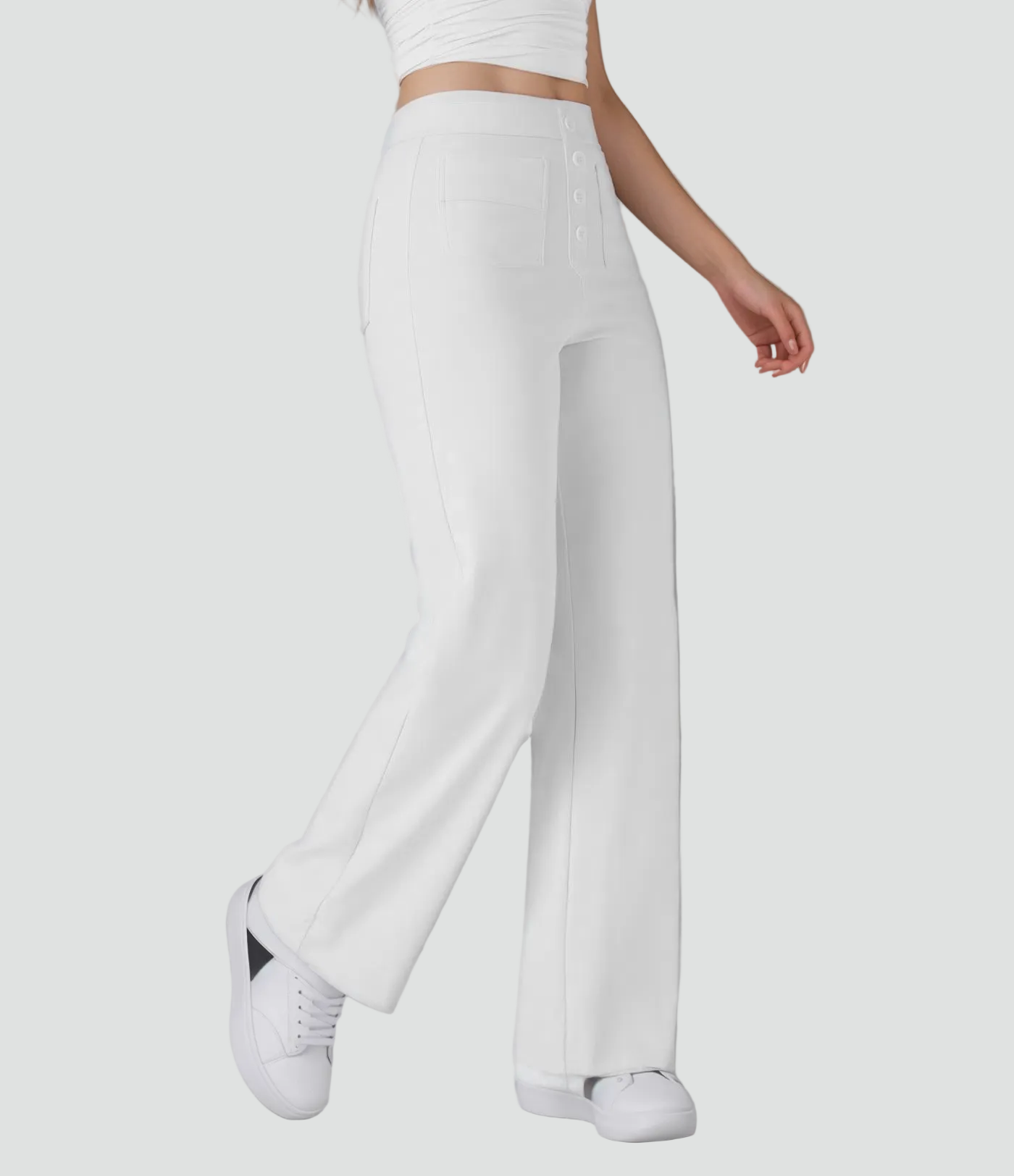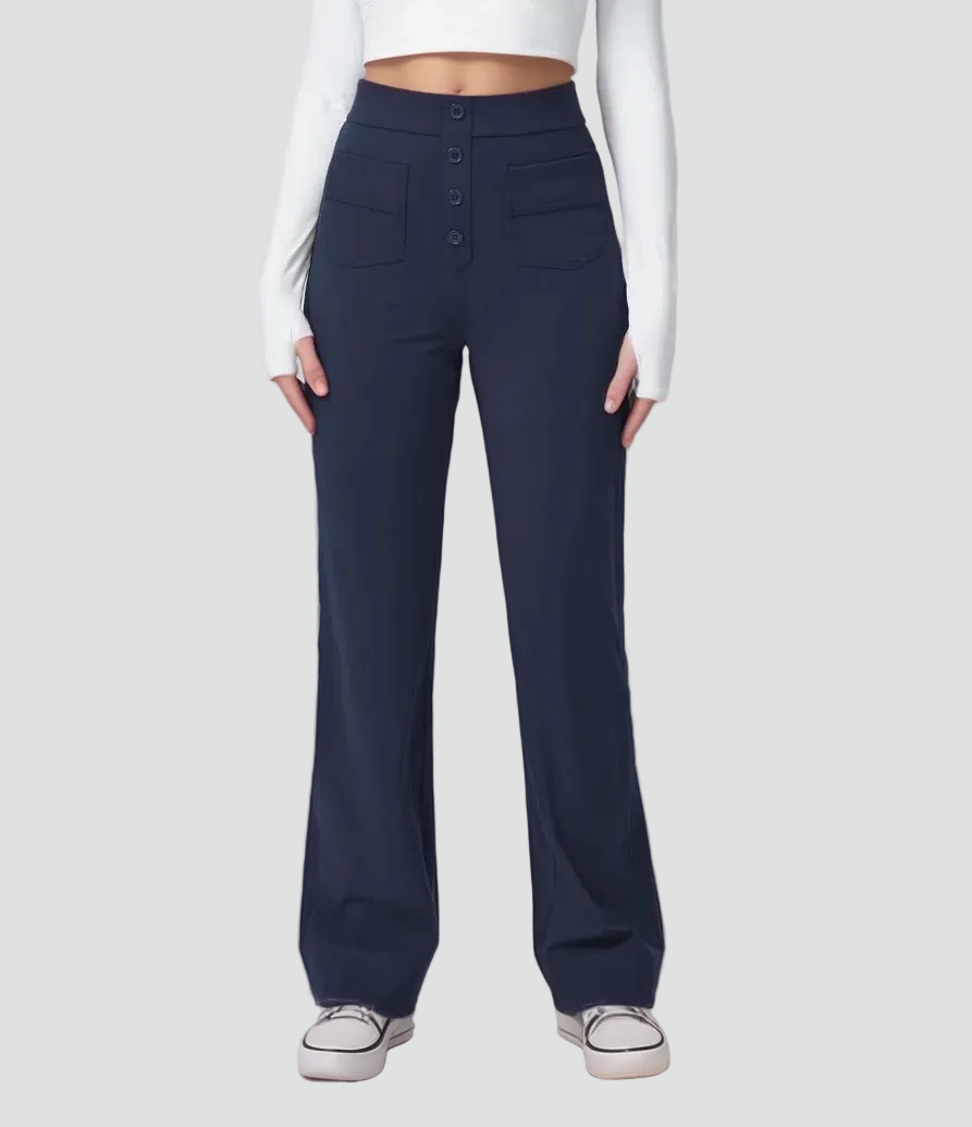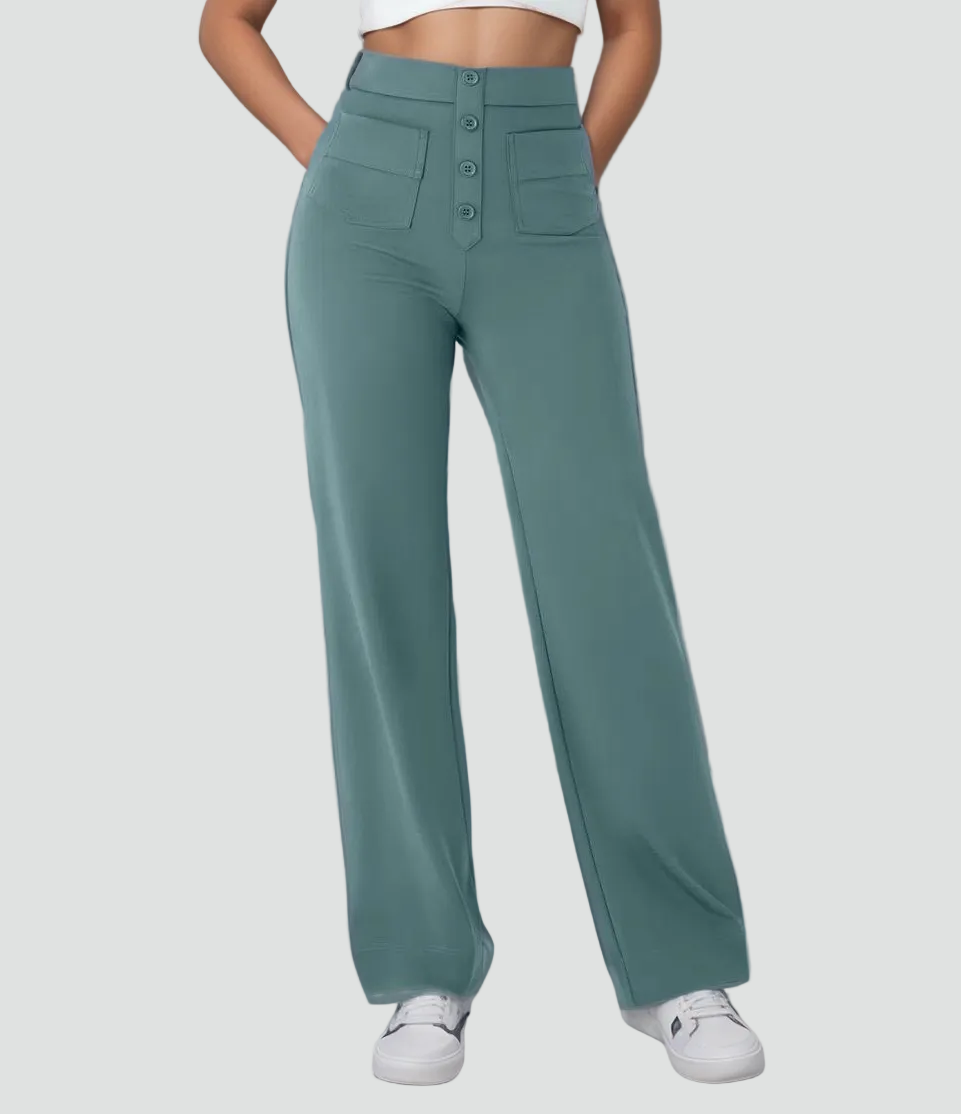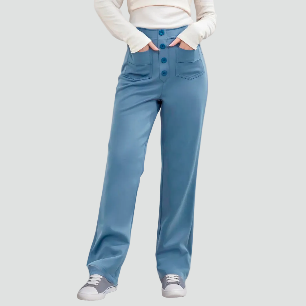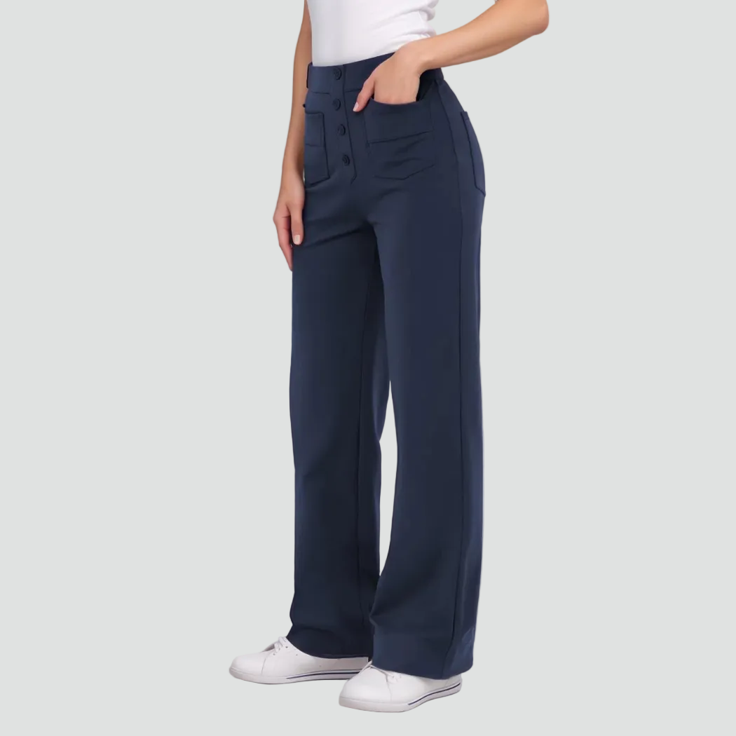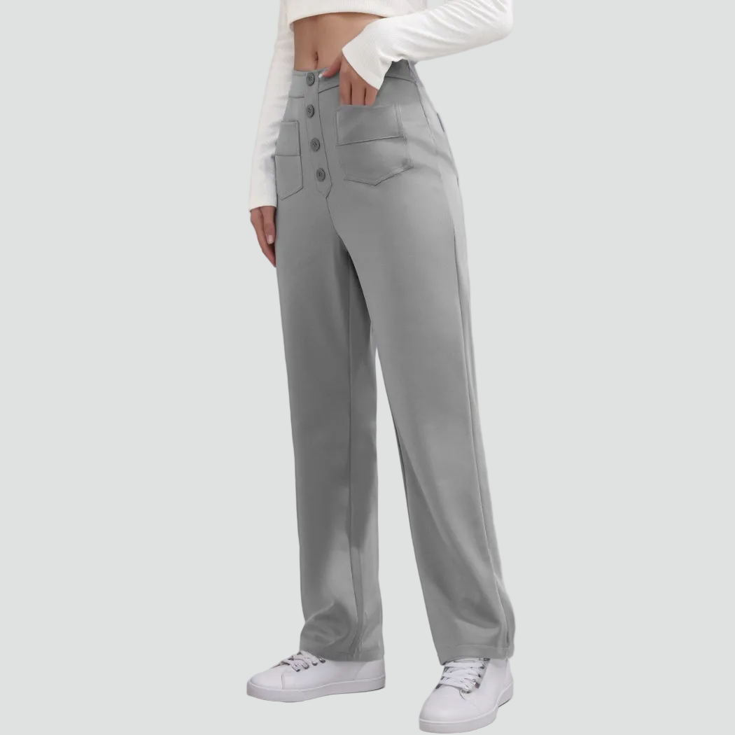 Damskie spodnie z wysokim stanem zapinane na guziki