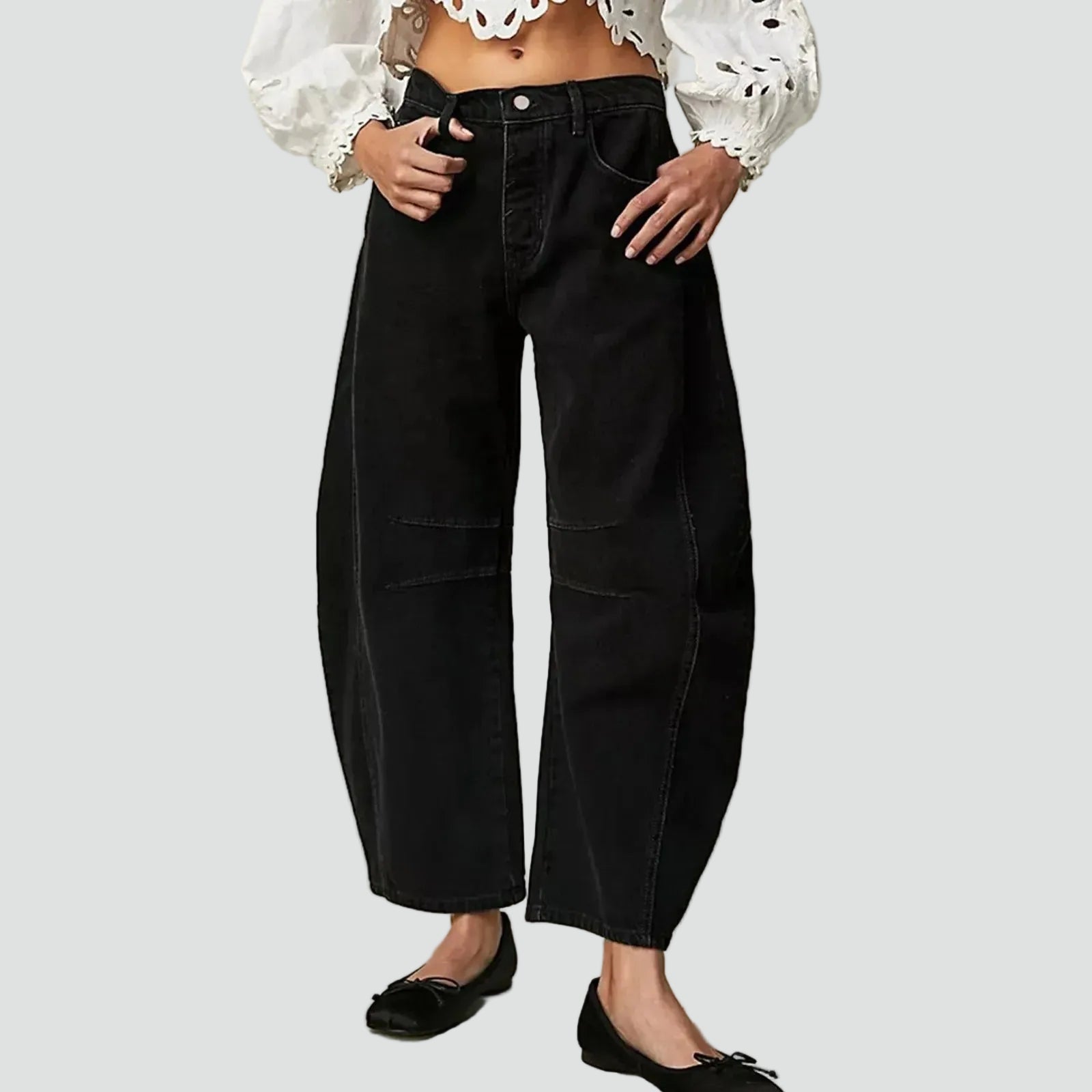 • Szerokie nogawki zapewniają swobodę ruchów i efekt modnego, luźnego looku