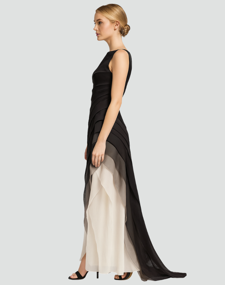 Elegancka asymetryczna koktajlowa sukienka maxi damska z rozcięciem