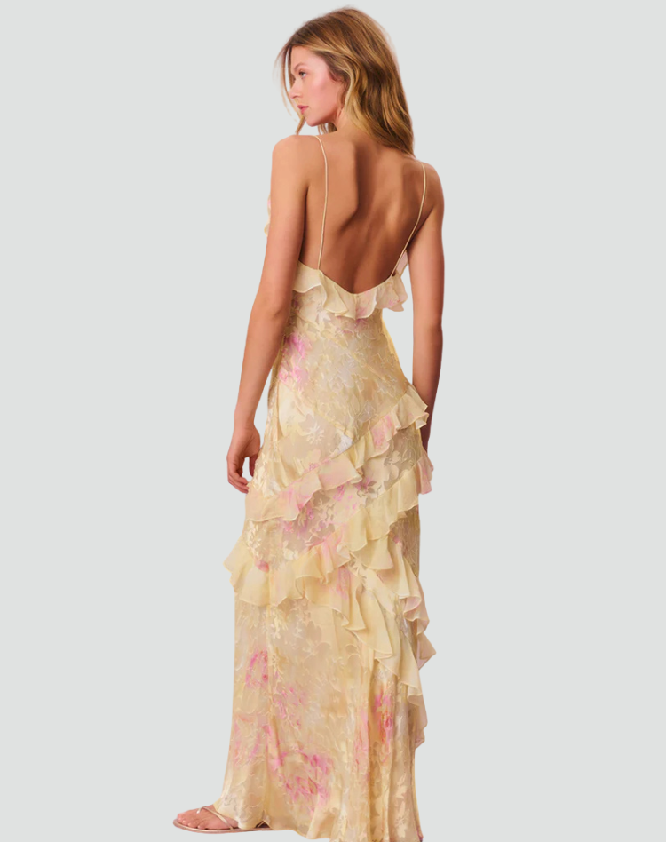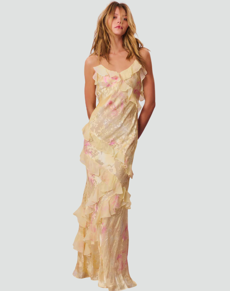 Elegancka sukienka maxi damska party wieczorowa z falbanami