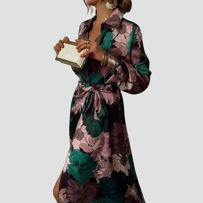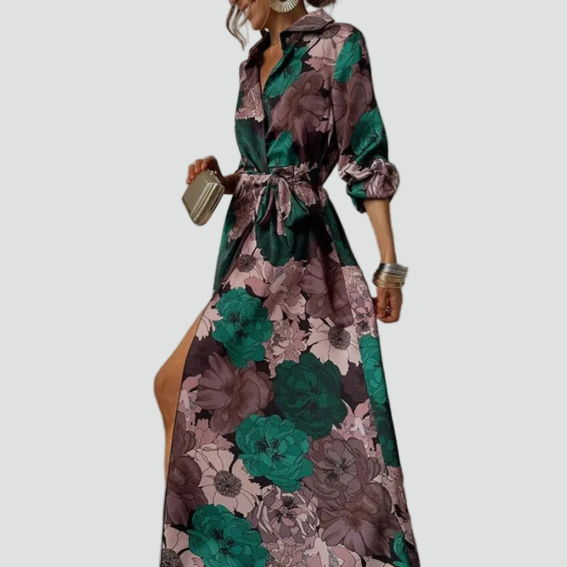 Elegancka sukienka maxi damska w kwiaty z dekoltem V gala