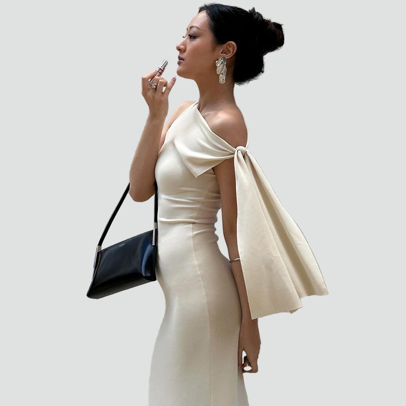 Elegancka sukienka wieczorowa damska z kokardą