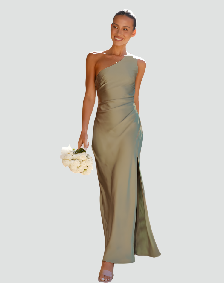 Dopasowana długa sukienka koktajlowa na jedno ramię idealna na wesele