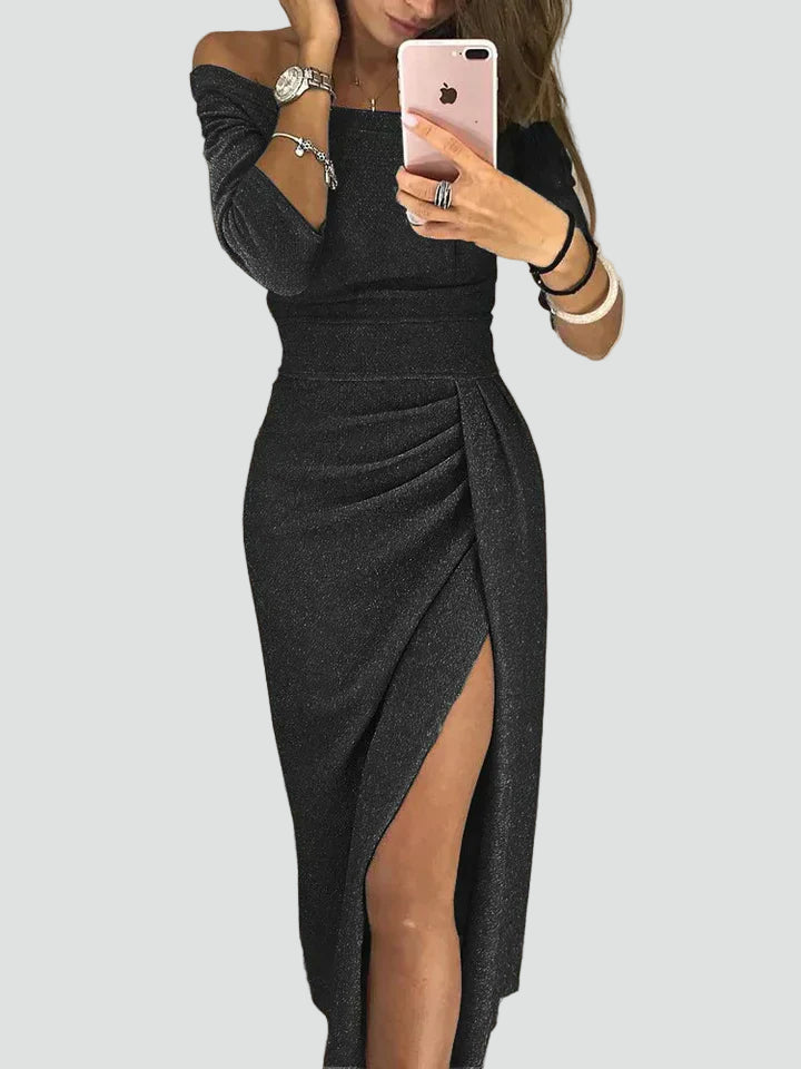• Rozcięcie z przodu wysmukla sylwetkę i dodaje sukience zmysłowości