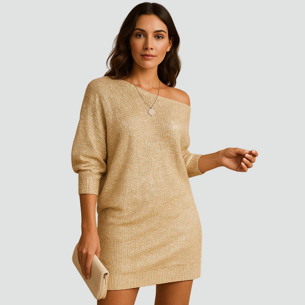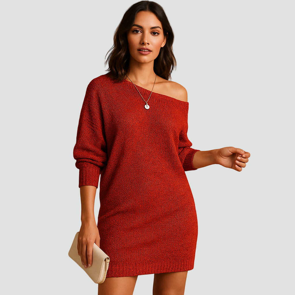Dzianinowa sukienka mini dla kobiet z odkrytym ramieniem