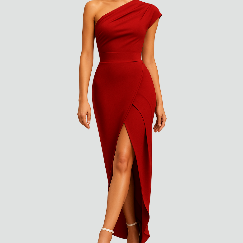 Wyrafinowana i zmysłowa – ta dopasowana sukienka koktajlowa zachwyca swoją prostotą i elegancją. Asymetryczny krój na jedno ramię pięknie podkreśla sylwetkę, a wysokie rozcięcie dodaje subtelnej drapieżności. Idealna na przyjęcia, kolacje i wieczorne wyjścia, gdy chcesz wyglądać wyjątkowo i z klasą.