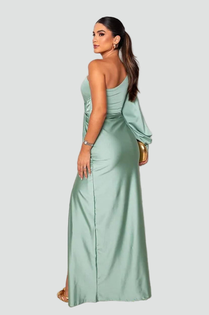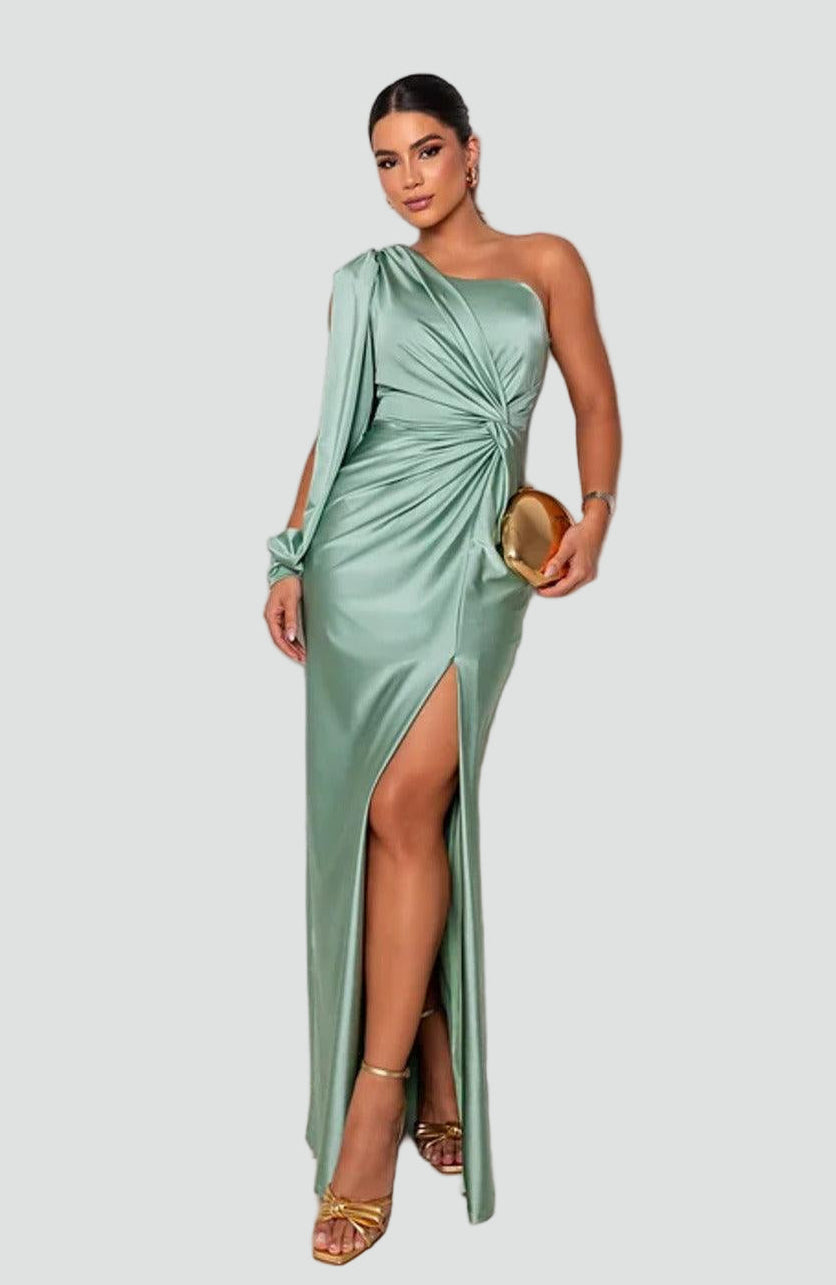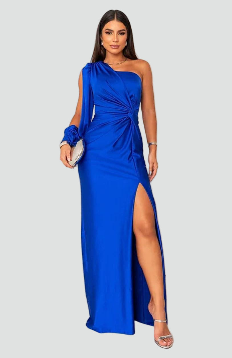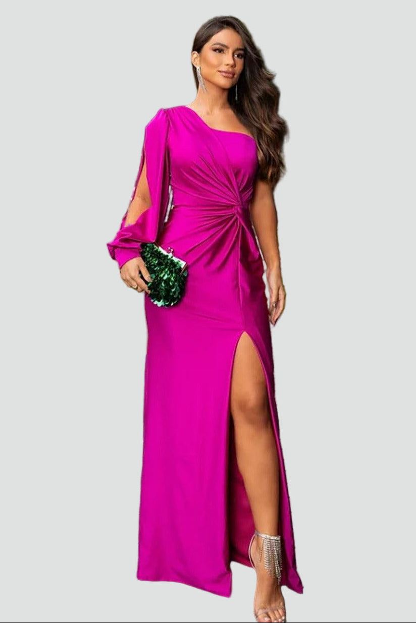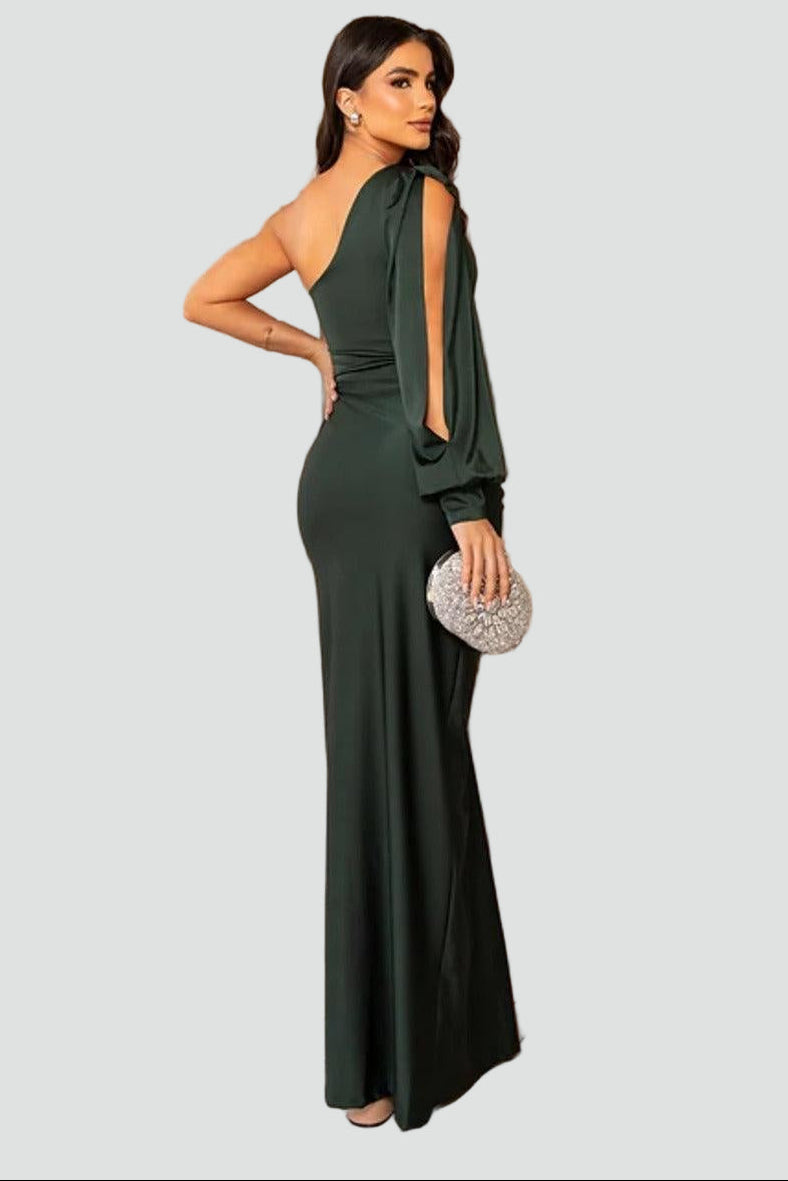 Elegancka sukienka wieczorowa maxi damska na jedno ramię