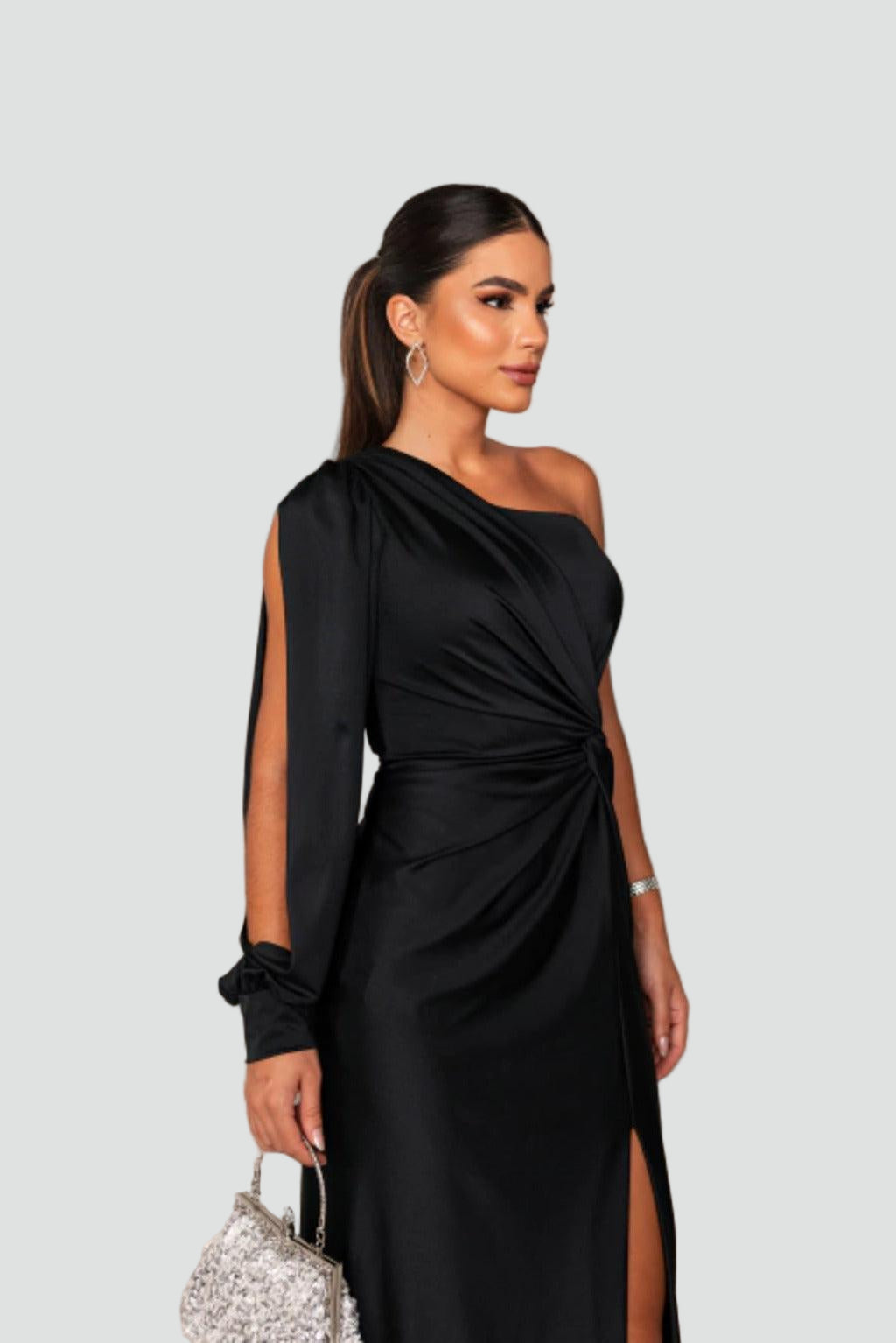 • Asymetryczny krój na jedno ramię podkreśla linię ramion i dekolt