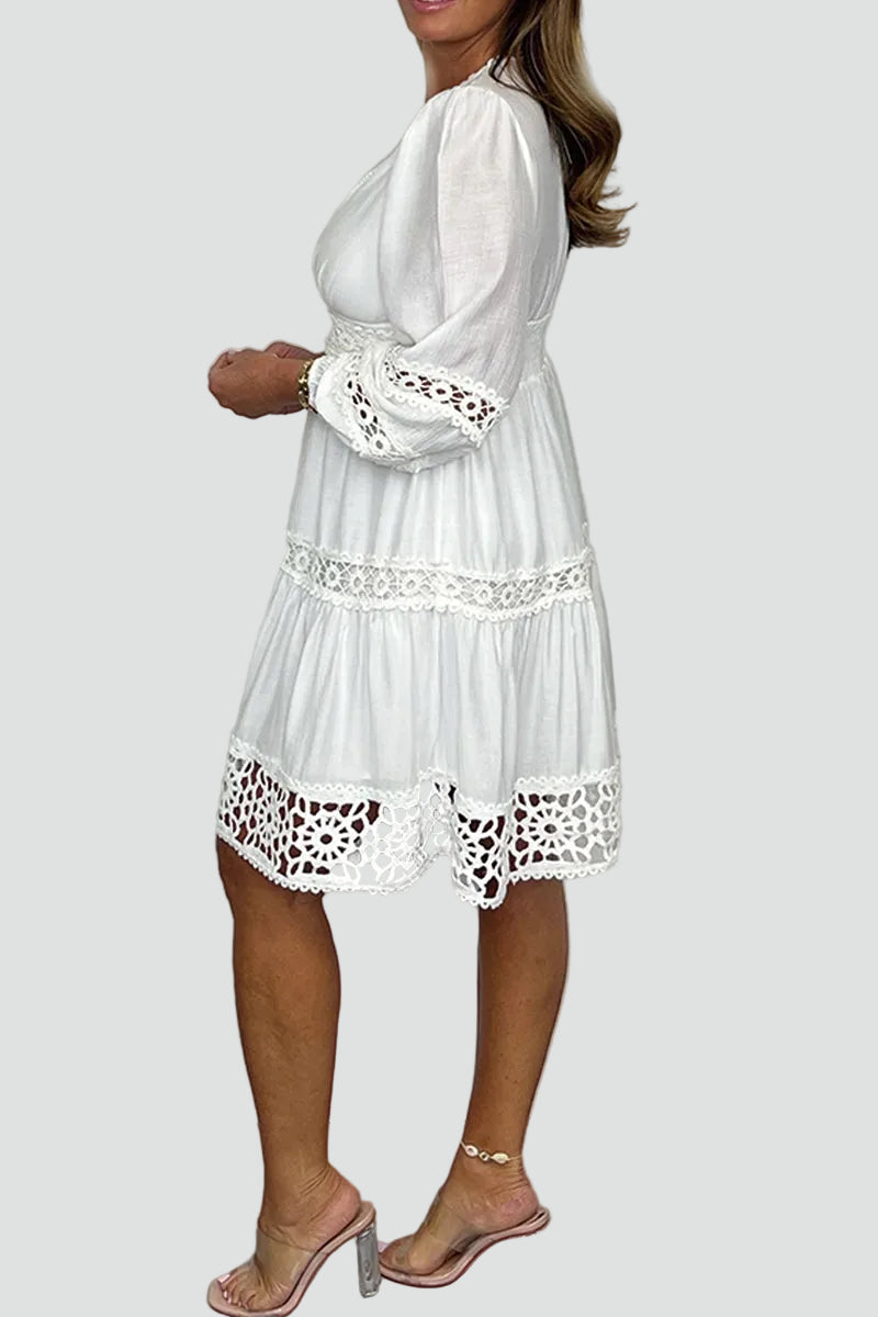 Letnia sukienka mini boho z koronką i rękawem na imprezę