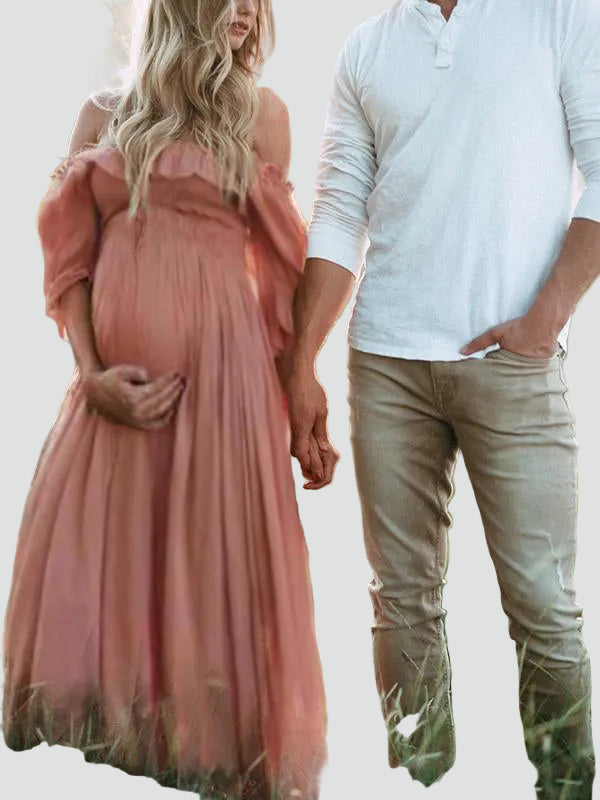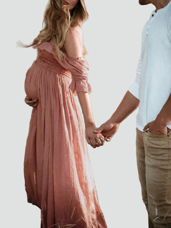 Poczuj się pięknie i swobodnie na każdym etapie ciąży w tej maxi sukience boho stworzonej do wyjątkowych chwil. Odsłonięte ramiona i elastyczna góra delikatnie dopasowują się do sylwetki, a zwiewna długość maxi miękko układa się na brzuchu, dając lekkość i pełen komfort. To idealny wybór na sesję zdjęciową w plenerze, baby shower i wszystkie dni, kiedy chcesz wyglądać romantycznie bez rezygnowania z wygody.