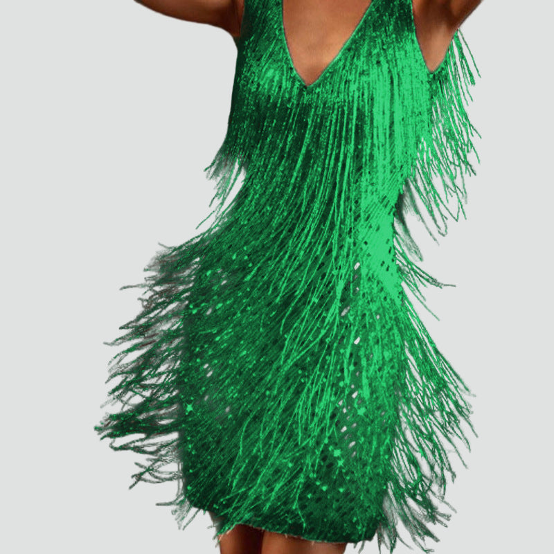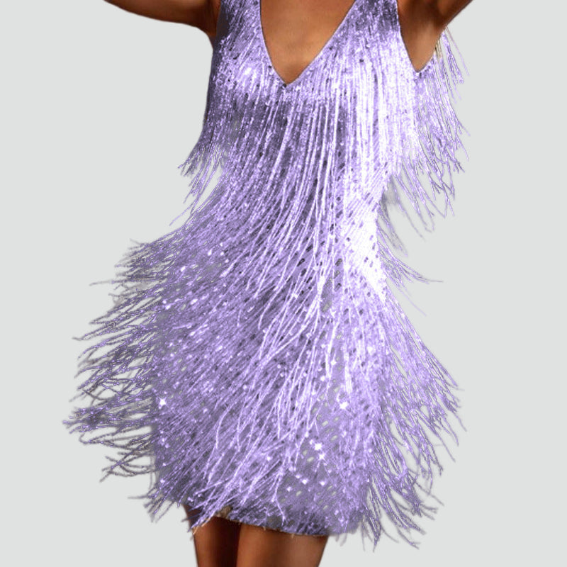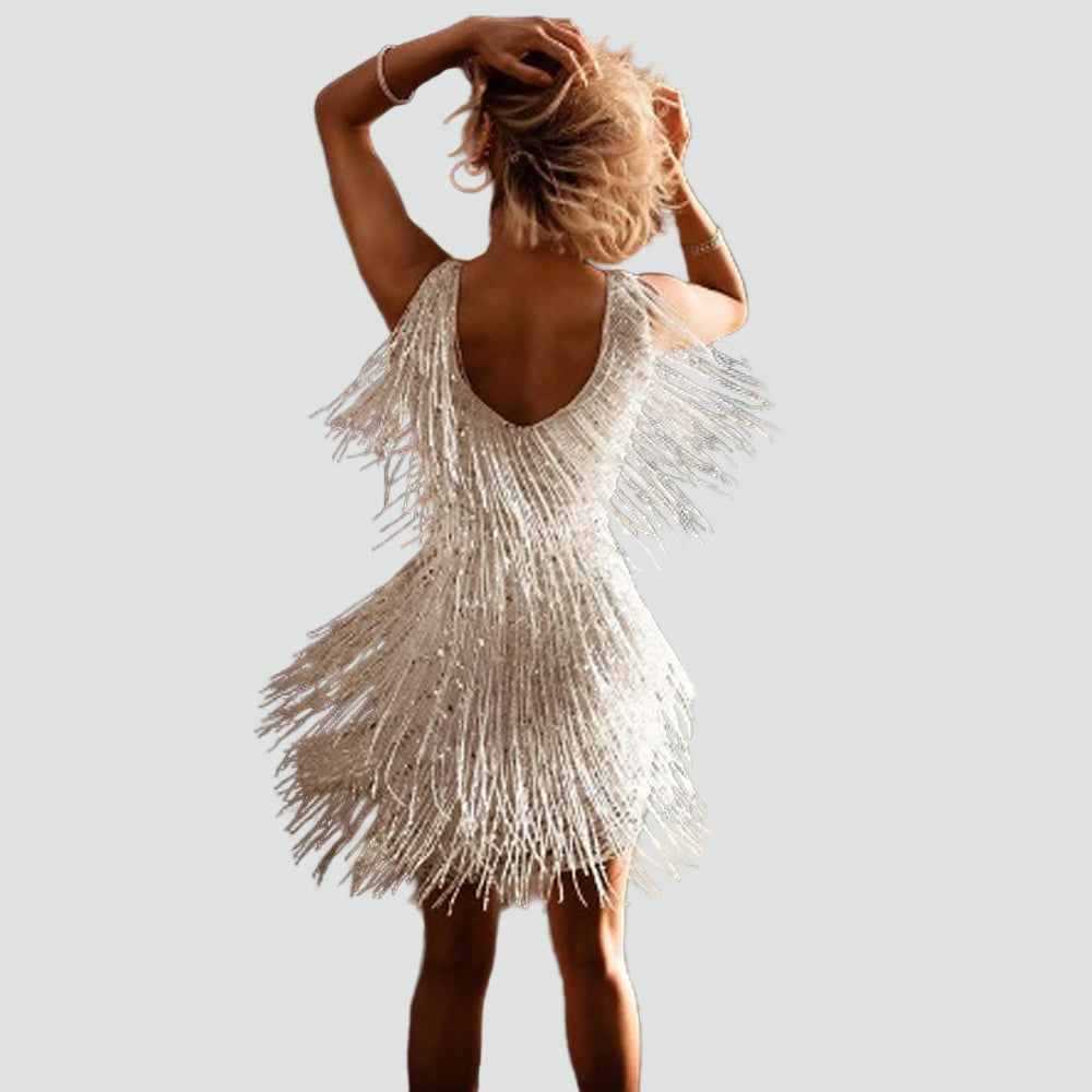 Sukienka imprezowa mini z cekinami i frędzlami damska