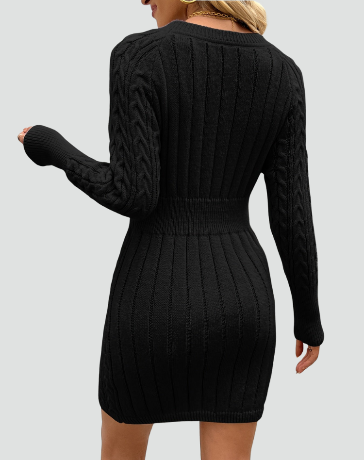 Dzianinowa sukienka swetrowa mini z długim rękawem dla kobiet