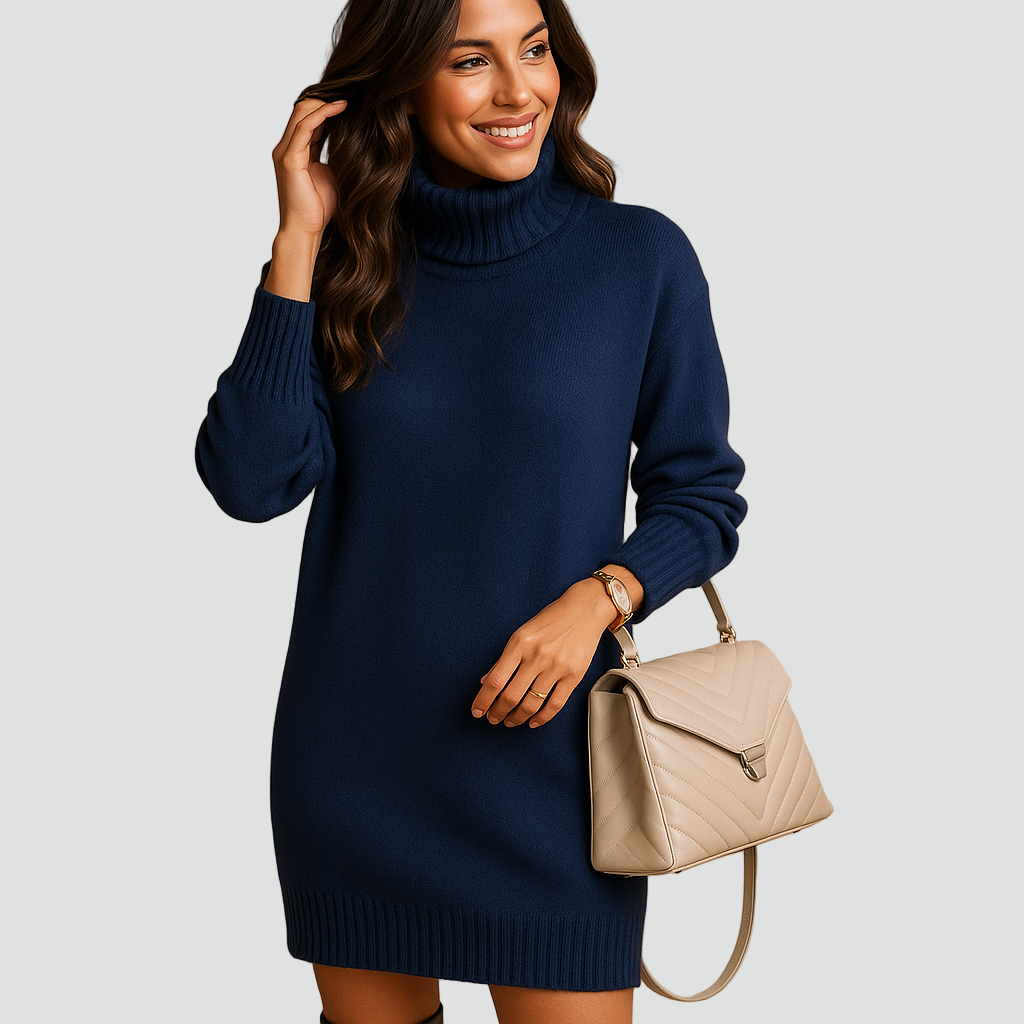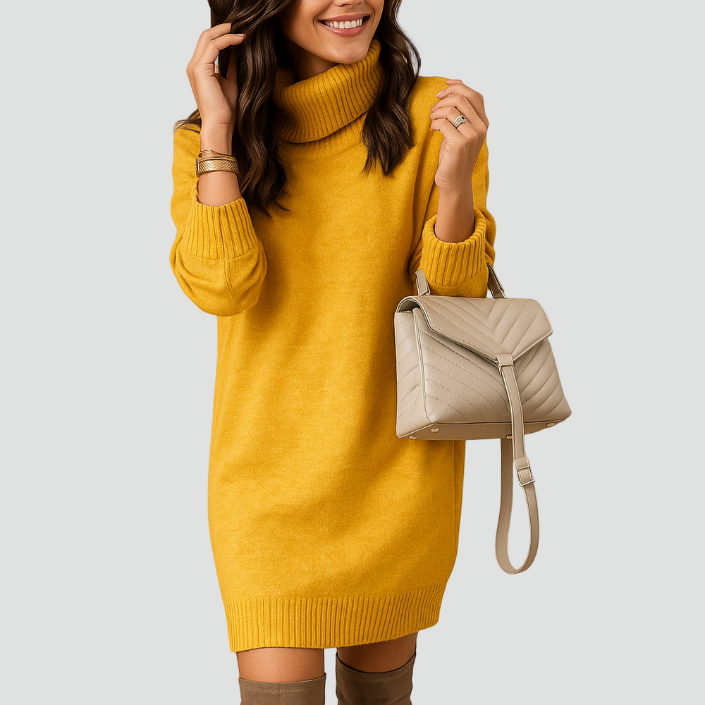 Dzianinowa sukienka swetrowa dla kobiet z golfem