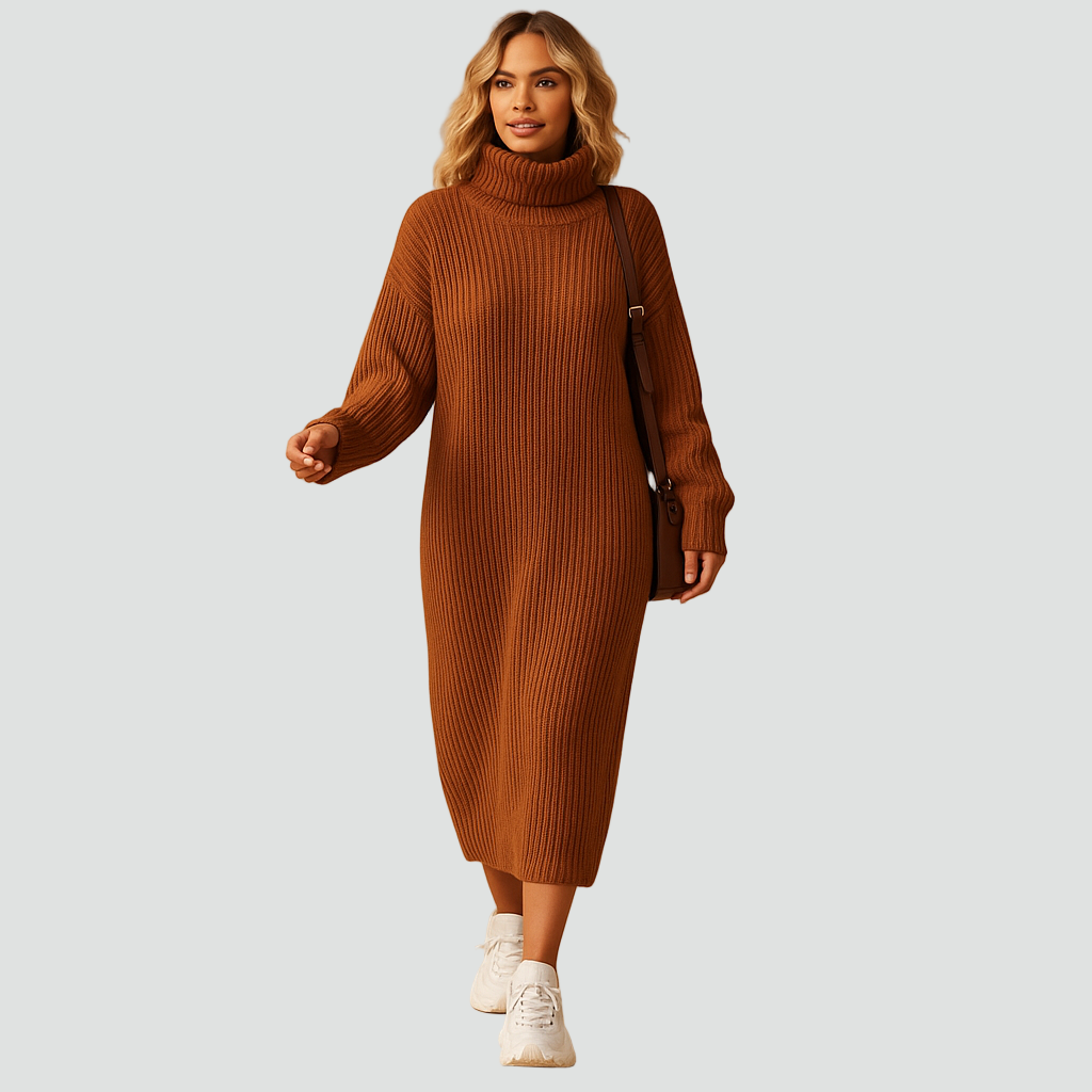 Dzianinowa sukienka swetrowa midi z golfem dla kobiet