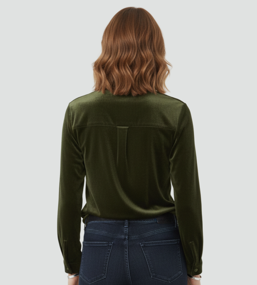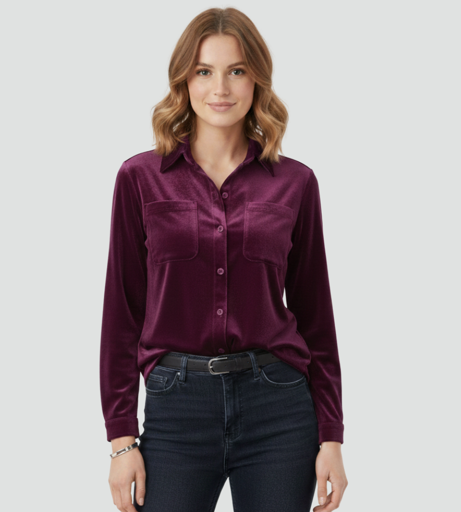 Damska welurowa koszula z długim rękawem i kieszonką