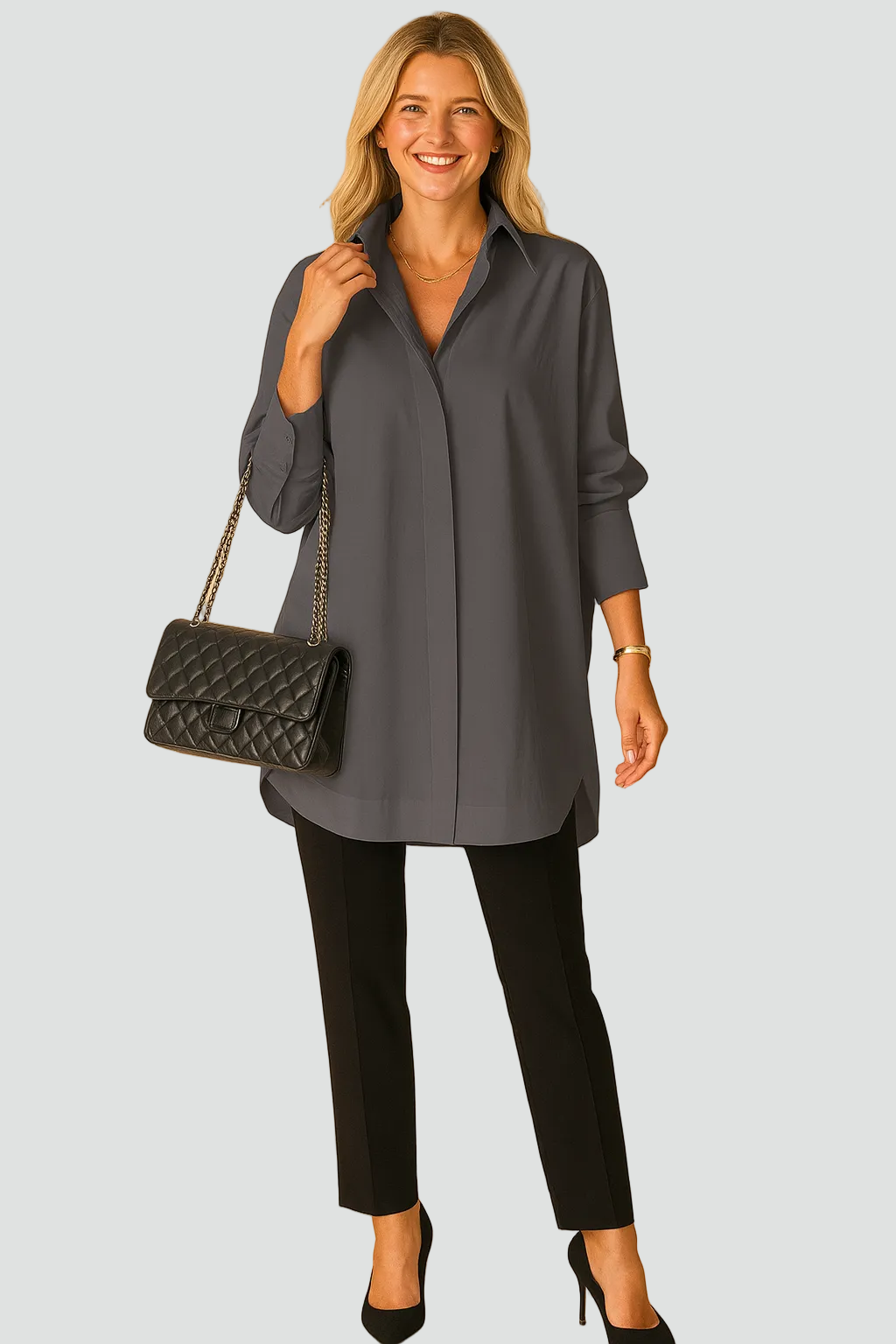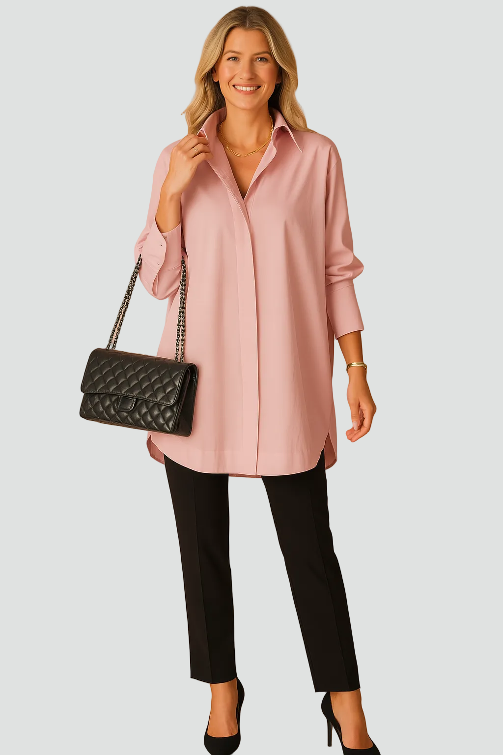 Długa elegancka tunikowa koszula damska oversize na co dzień