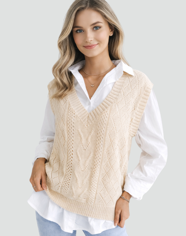 Dzianinowa kamizelka dla kobiet z dekoltem w serek