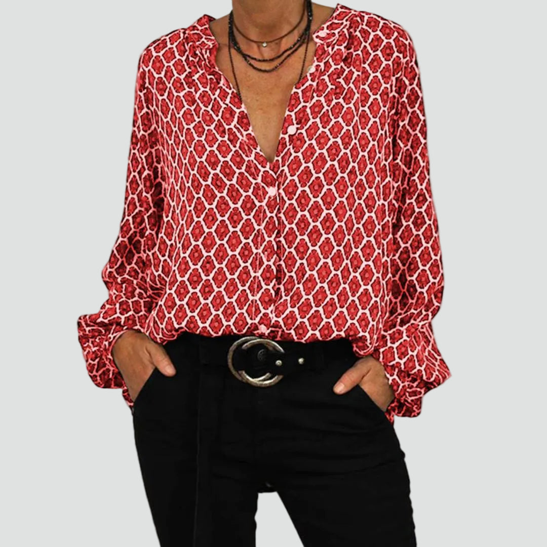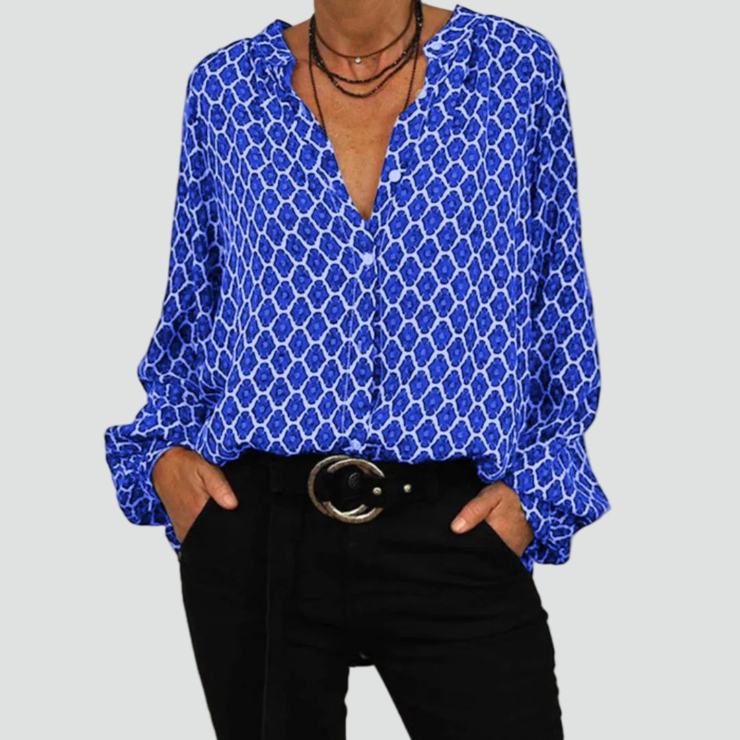 Lekka damska bluzka z dekoltem V i długim rękawem