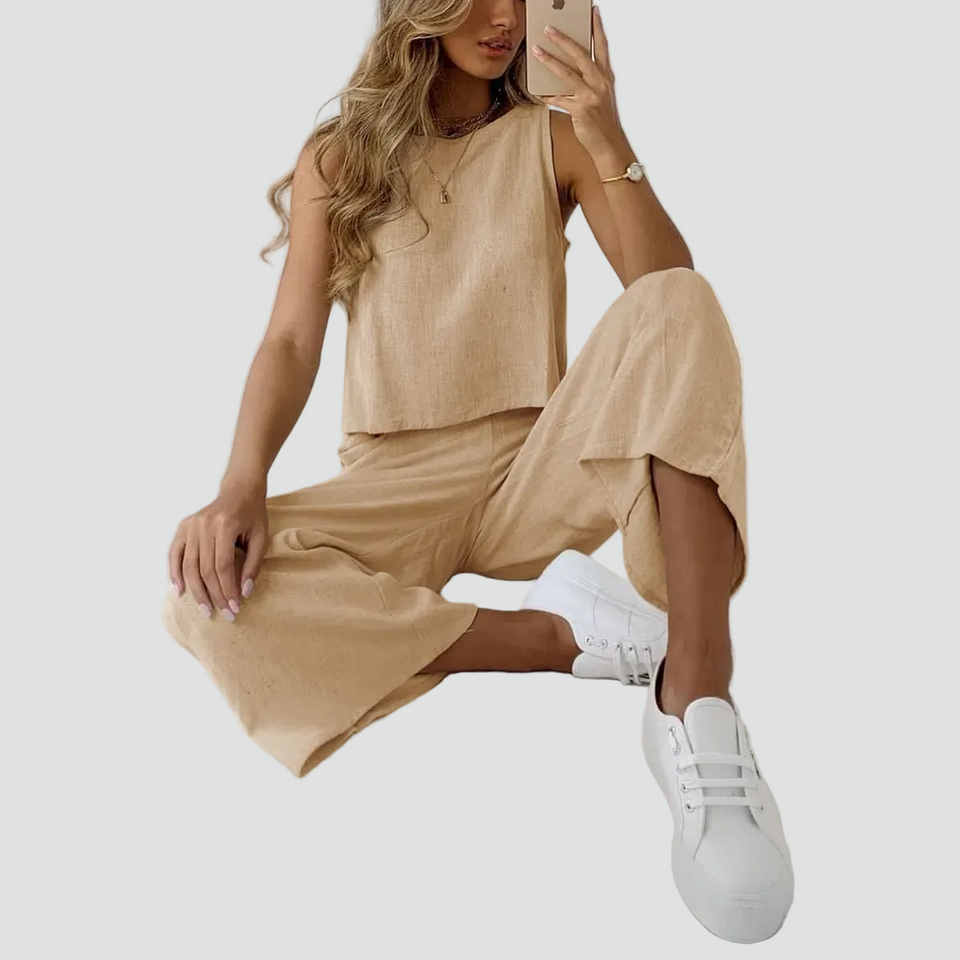 Letni komplet damski z topem bez rękawów i szerokimi spodniami