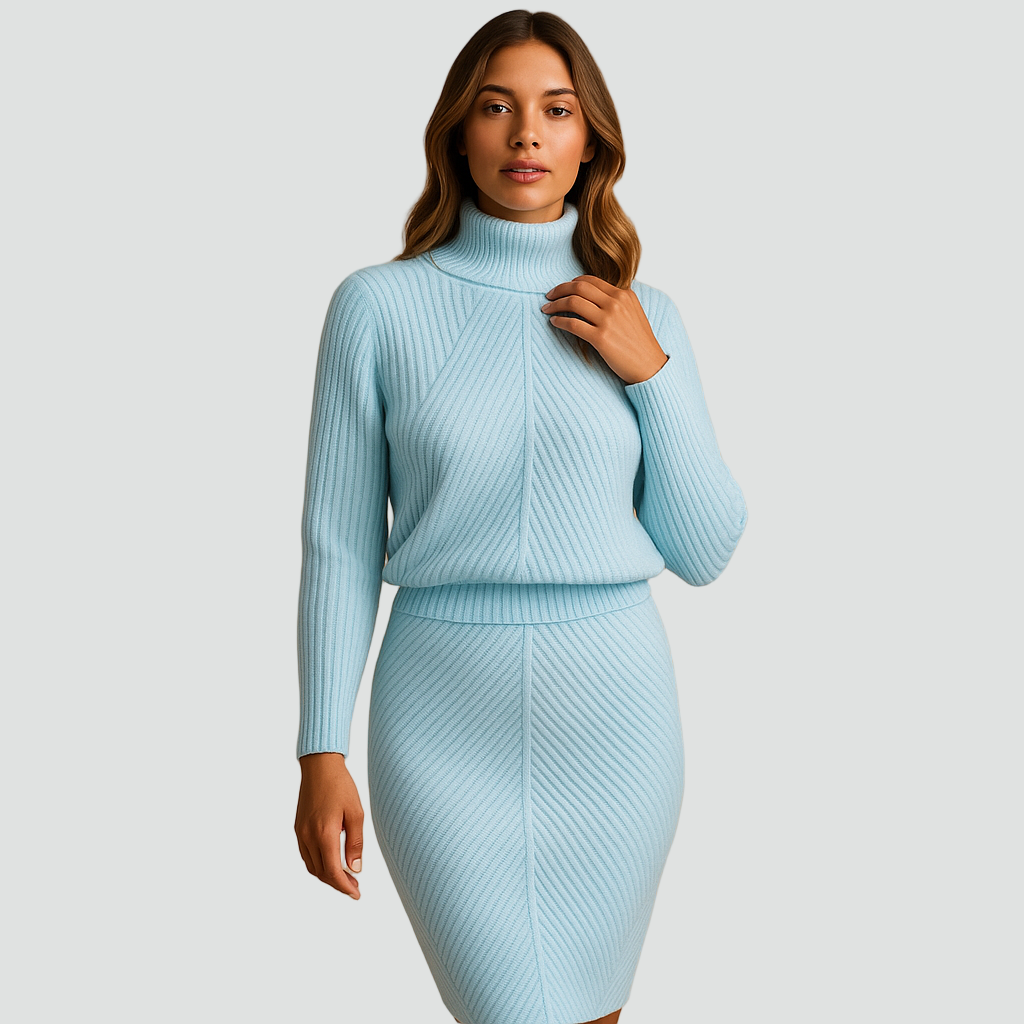 Dzianinowy komplet zimowy z golfem i spódnicą midi