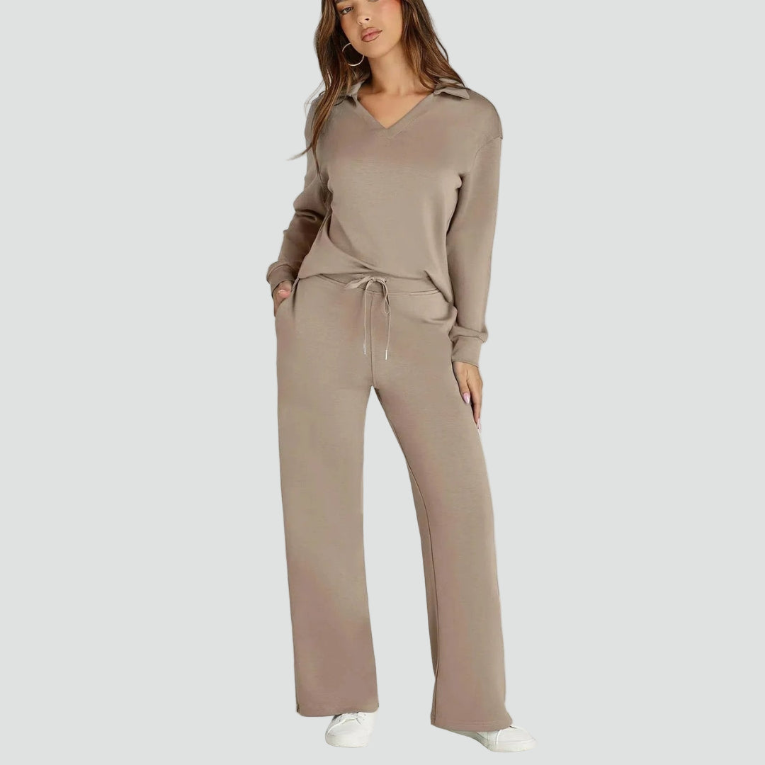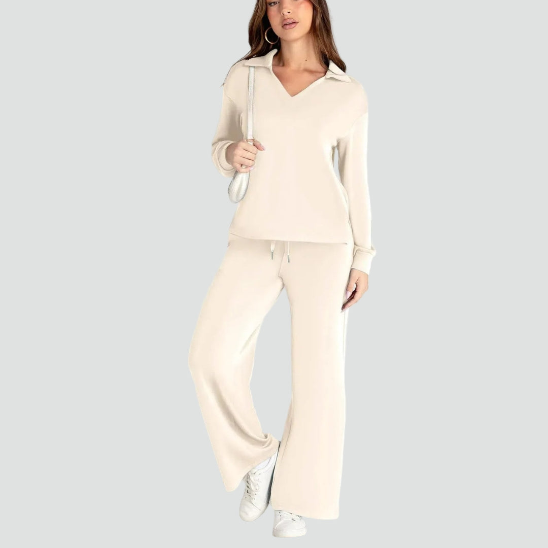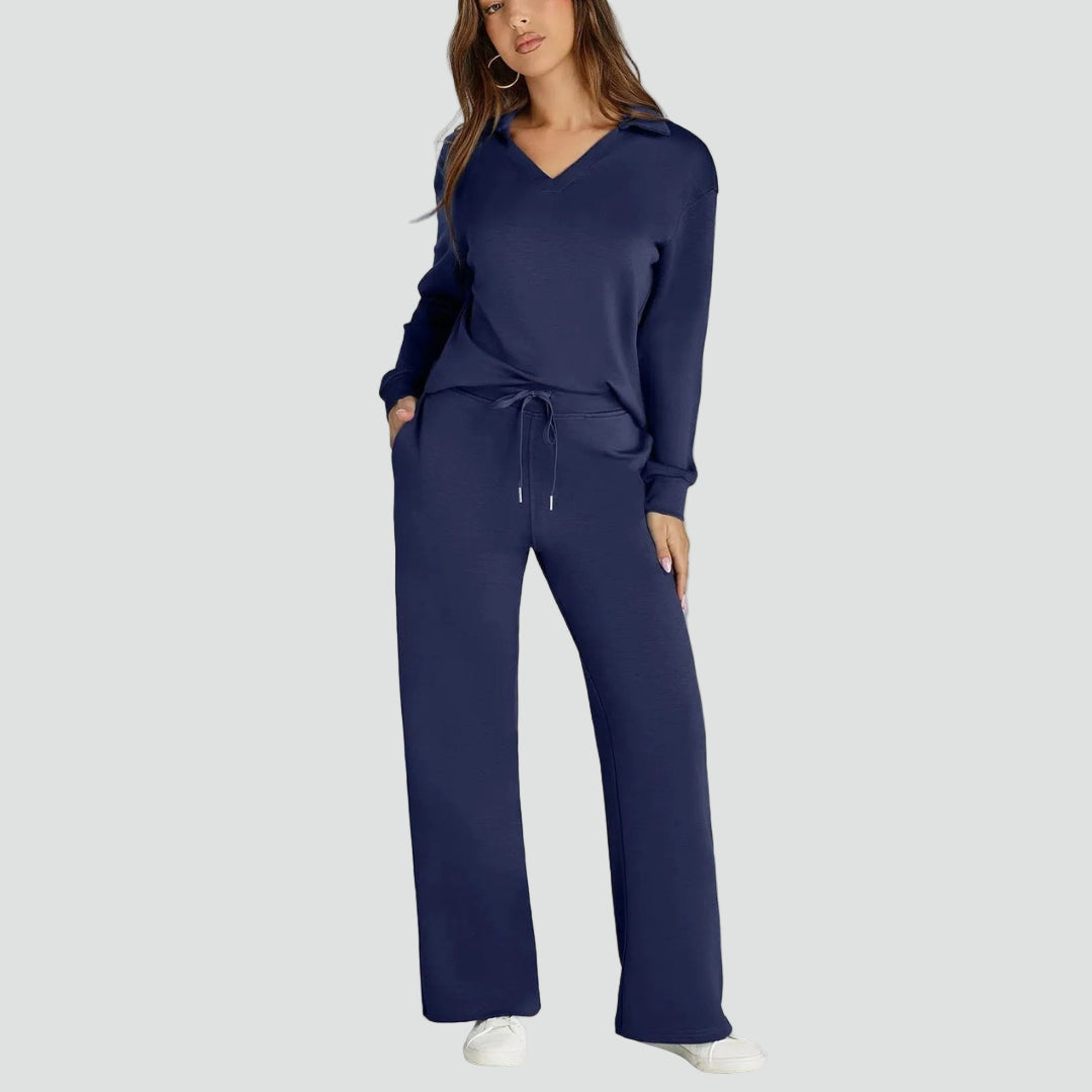 Zestaw homewear damski z kołnierzykiem i szerokimi spodniami