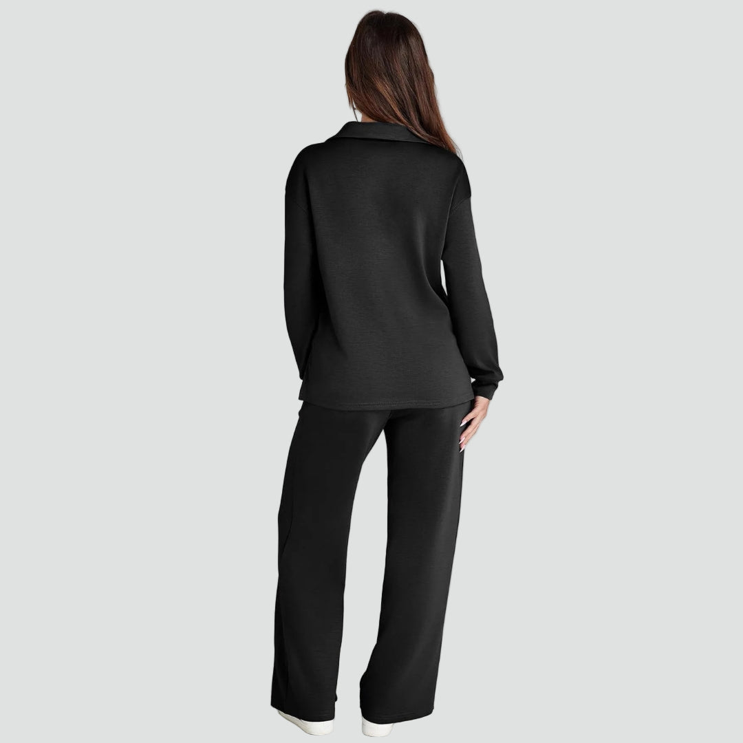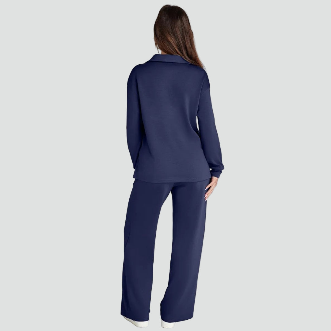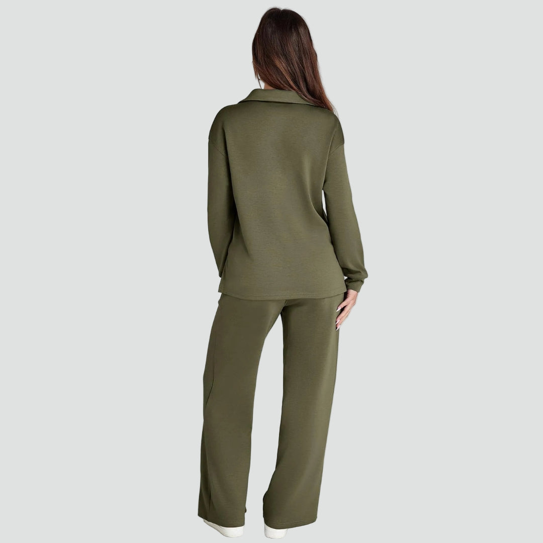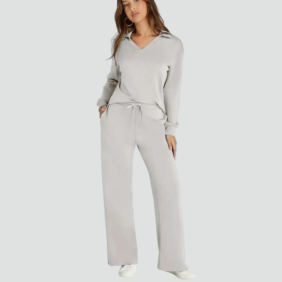 Zestaw homewear damski z kołnierzykiem i szerokimi spodniami