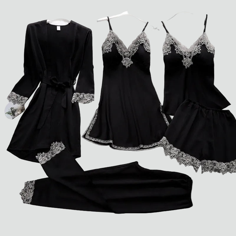 Ensemble de pyjama féminin en dentelle à cinq pièces