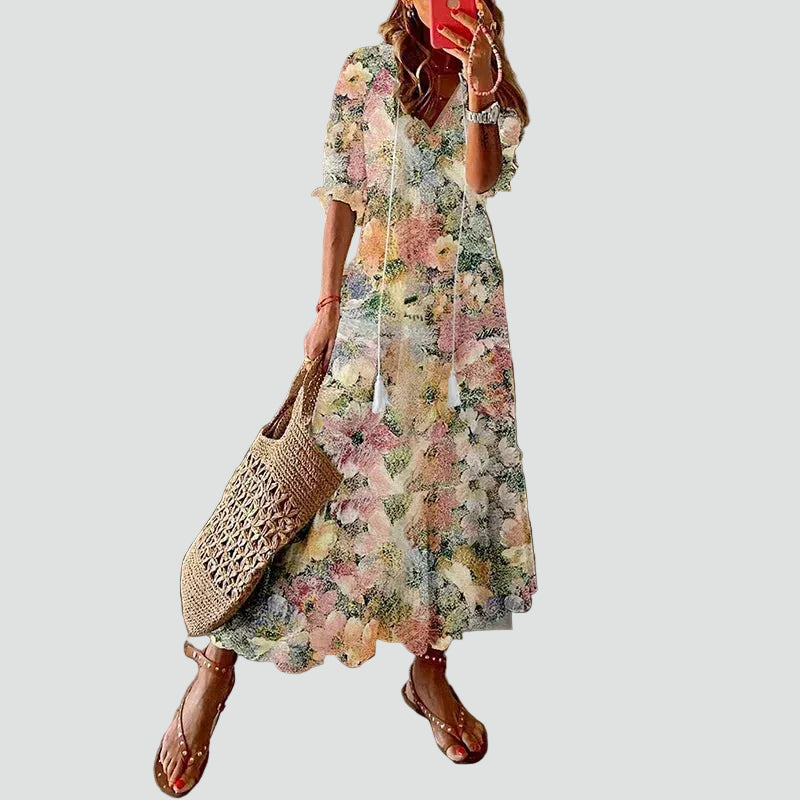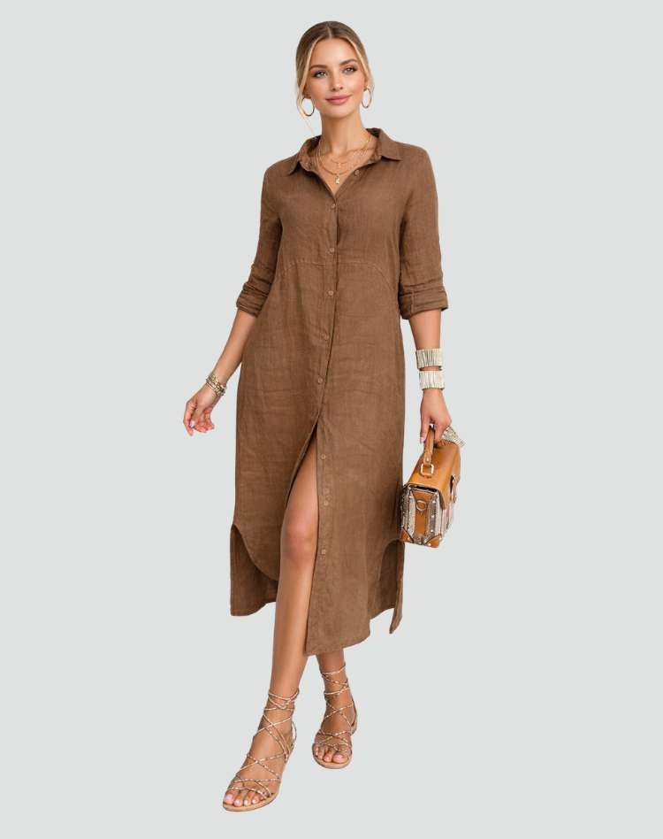 Zomerse maxi-jurk voor dames met lange mouwen en knopen