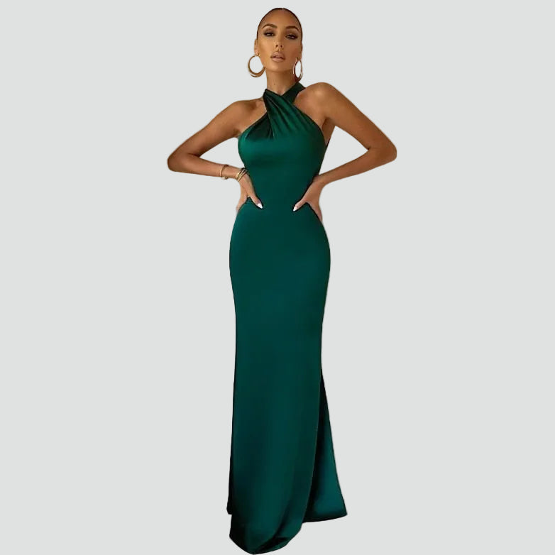Maxi-jurk met satijnen uitstraling voor bruiloft met watervalhals