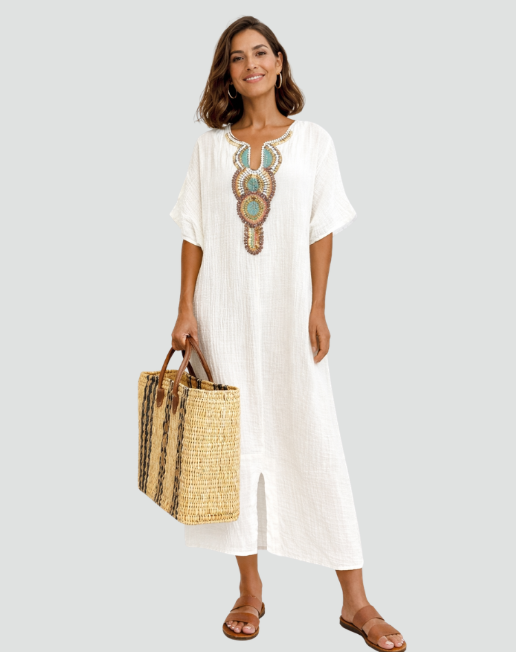Zomerse maxi-jurk boho met borduurwerk losse strandjurk