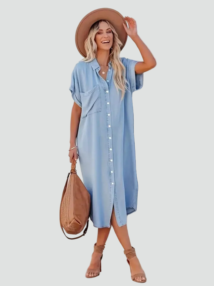 Dames mini overhemdjurk voor de zomer met kraag en zakken