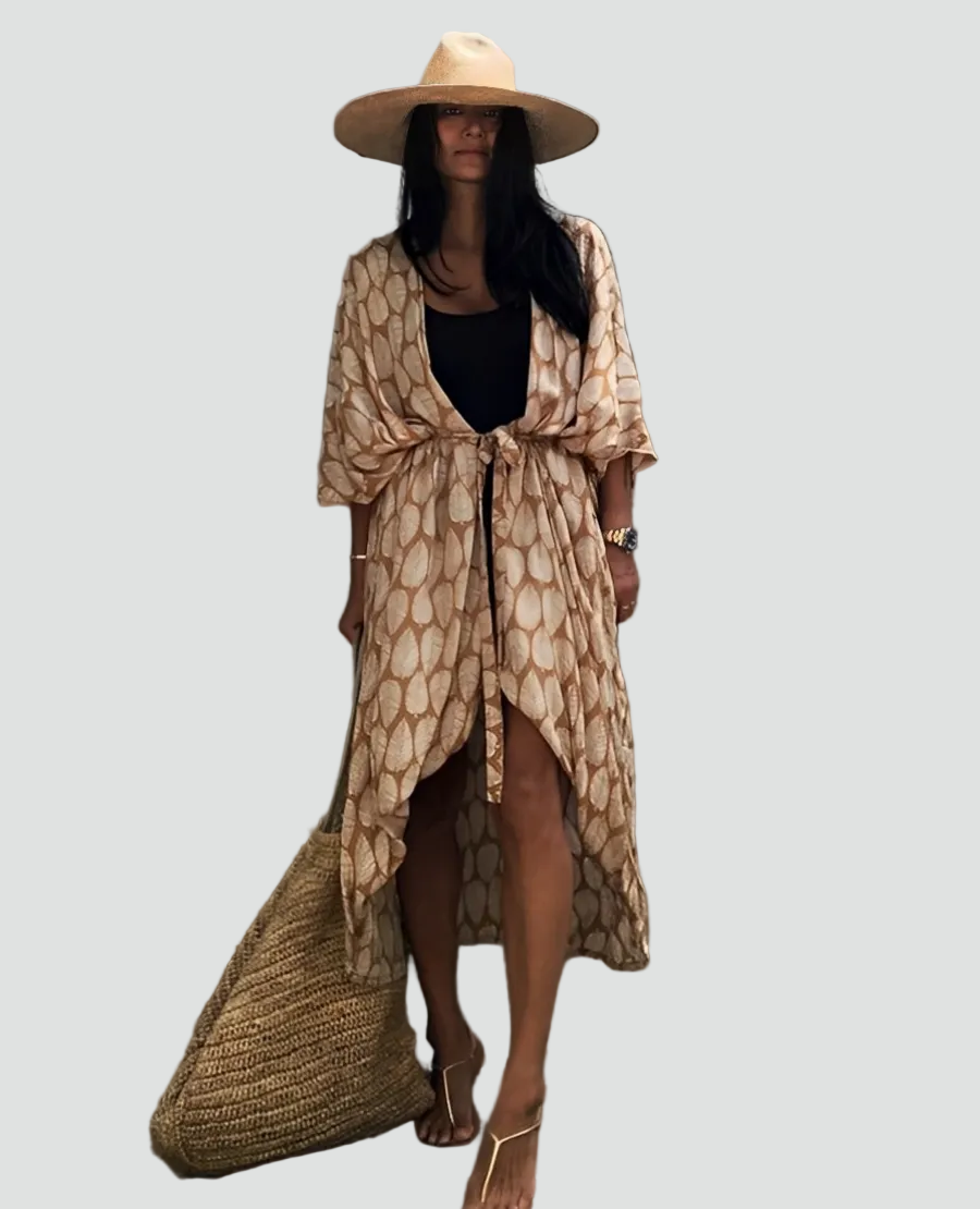 Strandkimono boho maxi met patroon, met taillekoord, losvallend