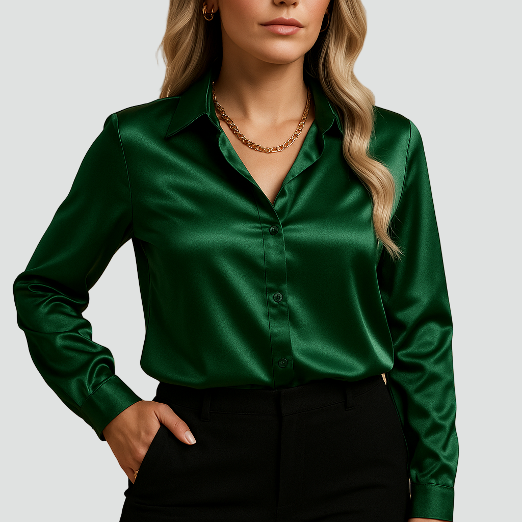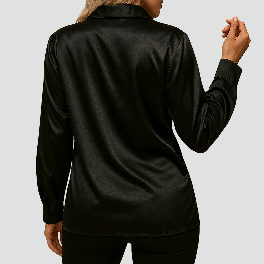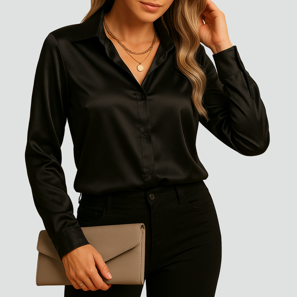 Klasyczna bluzka satynowa z kołnierzykiem i guzikami