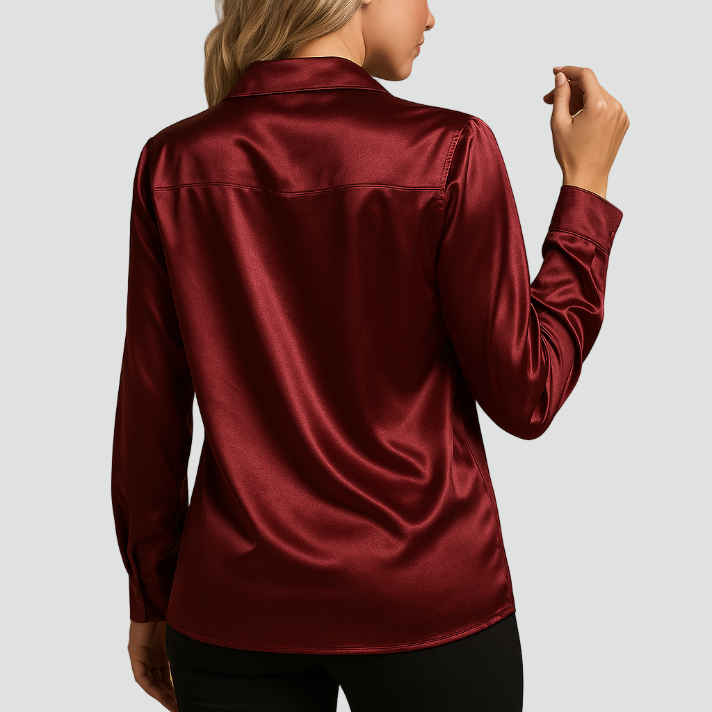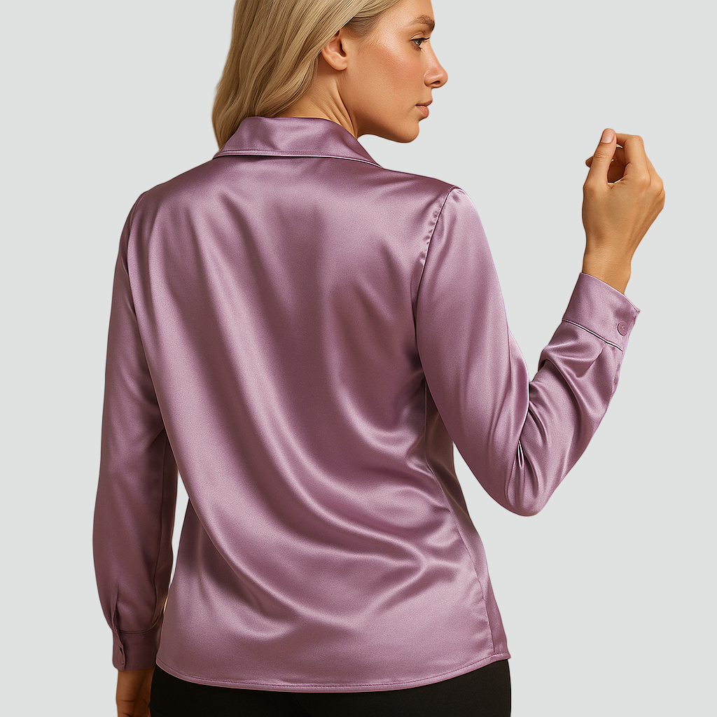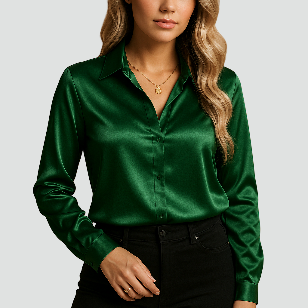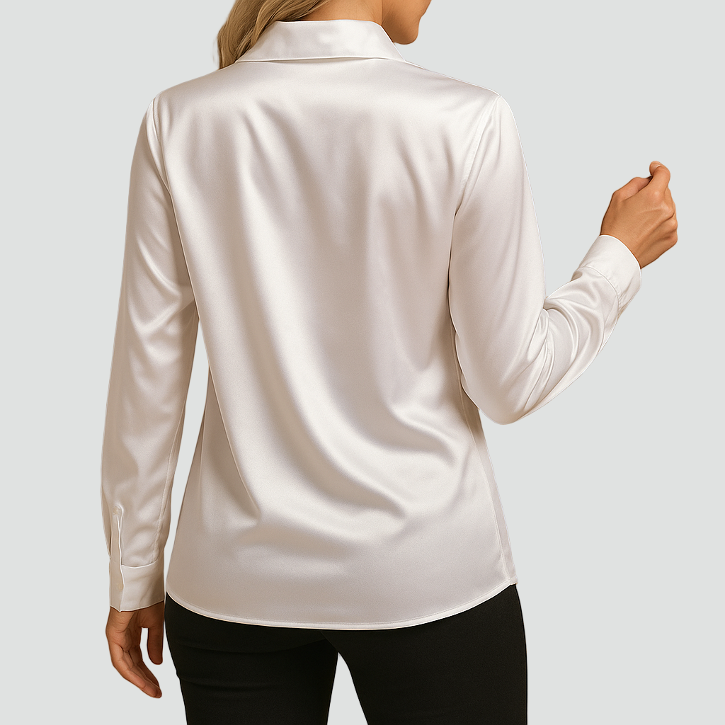 Klasyczna bluzka satynowa z kołnierzykiem i guzikami