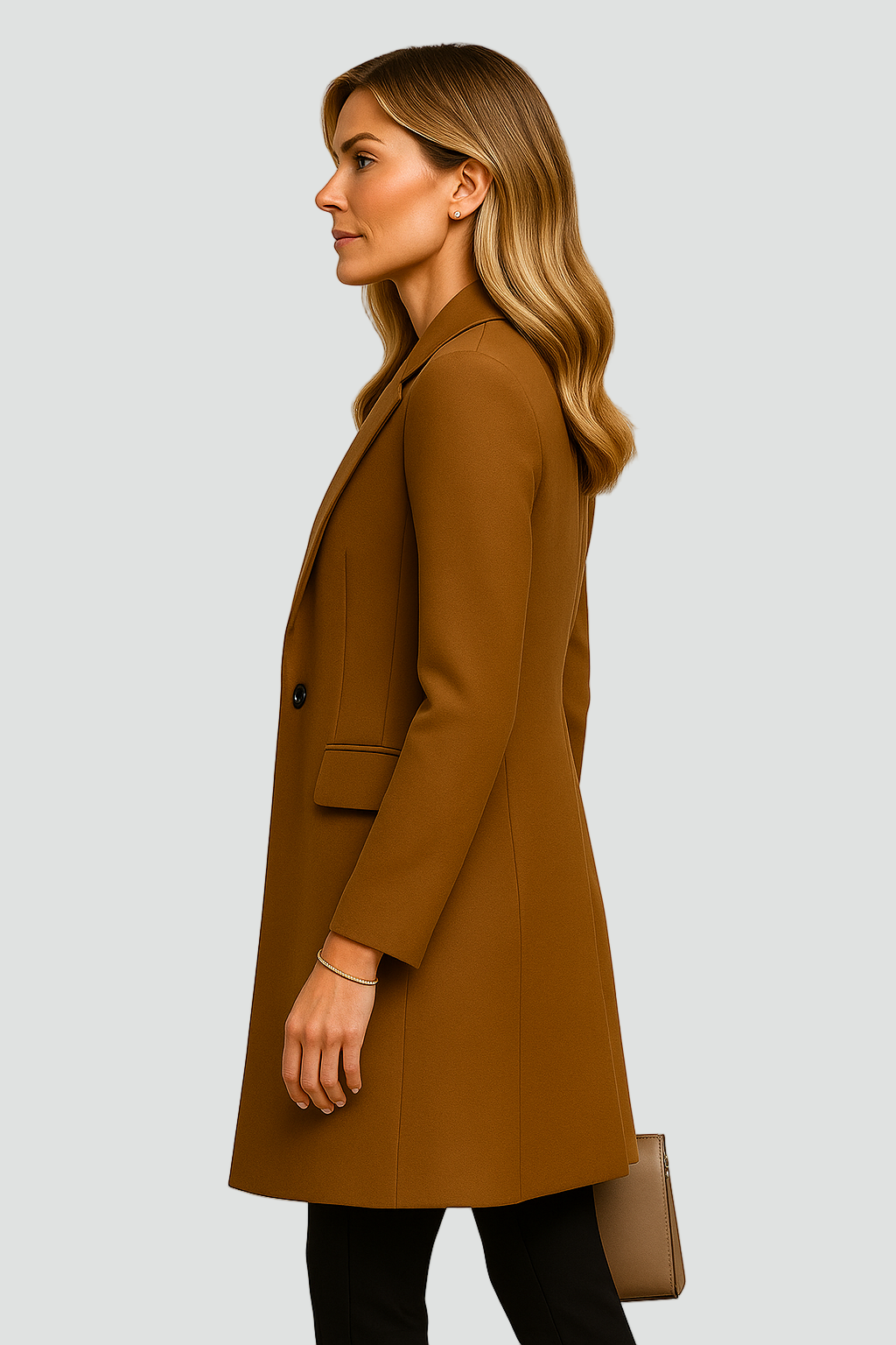 Klasyczny płaszcz wełniany, który zachwyca prostotą i ponadczasową elegancją. Jednorzędowy fason pięknie podkreśla sylwetkę, a gładka tkanina nadaje całości szyku. Delikatnie taliowany krój sprawia, że płaszcz prezentuje się wyjątkowo kobieco i stylowo. Idealny na chłodniejsze dni — do pracy, na spotkanie czy elegancki spacer po mieście.