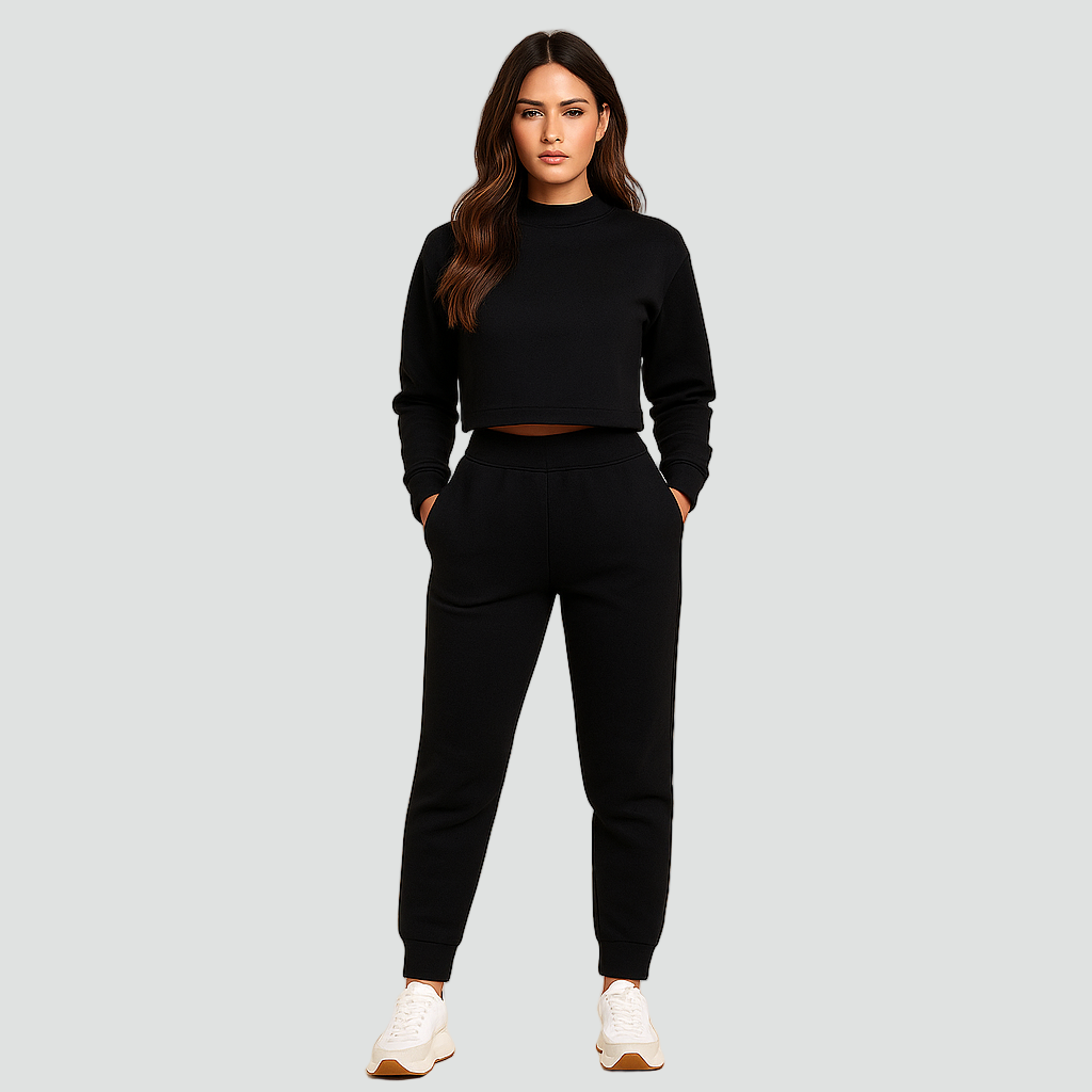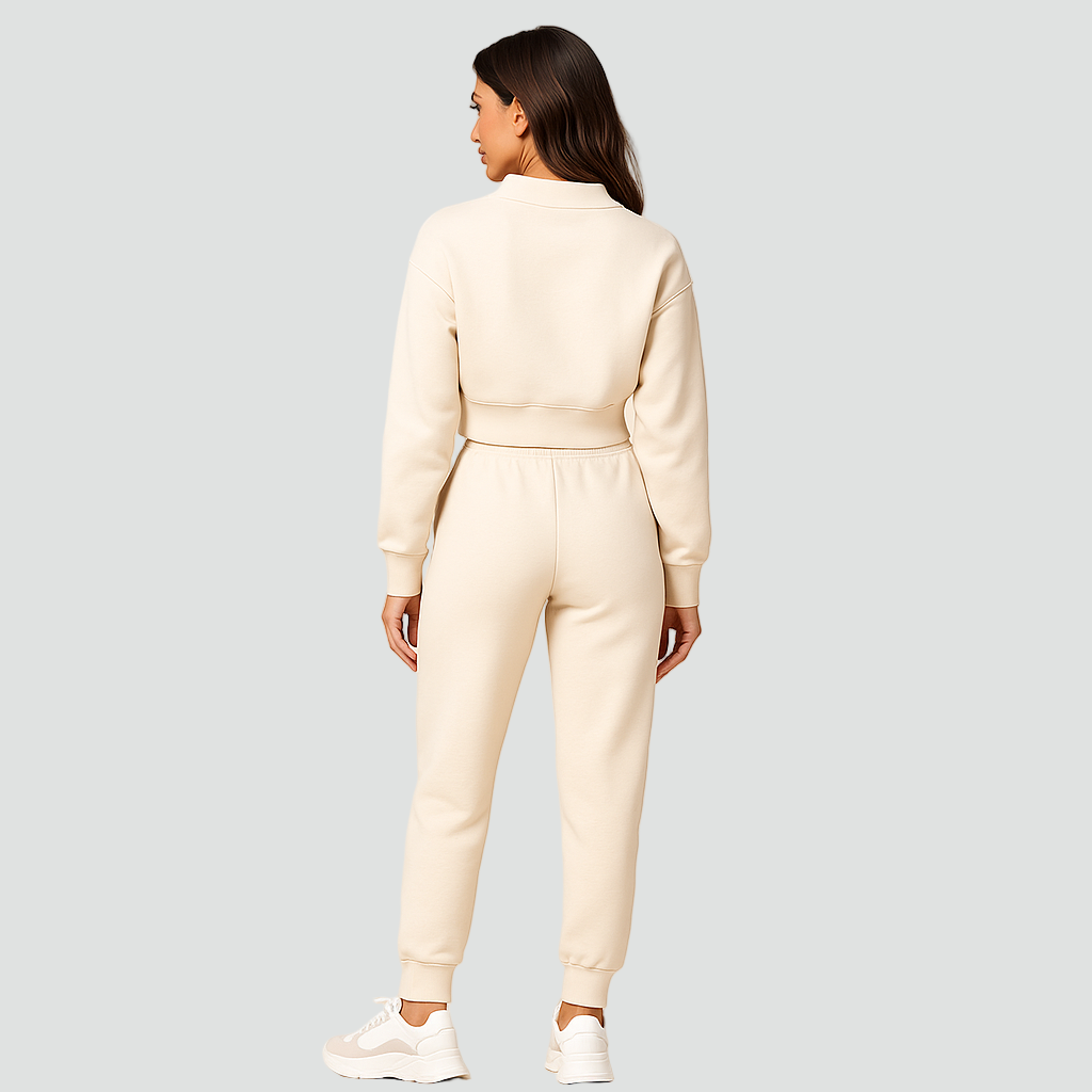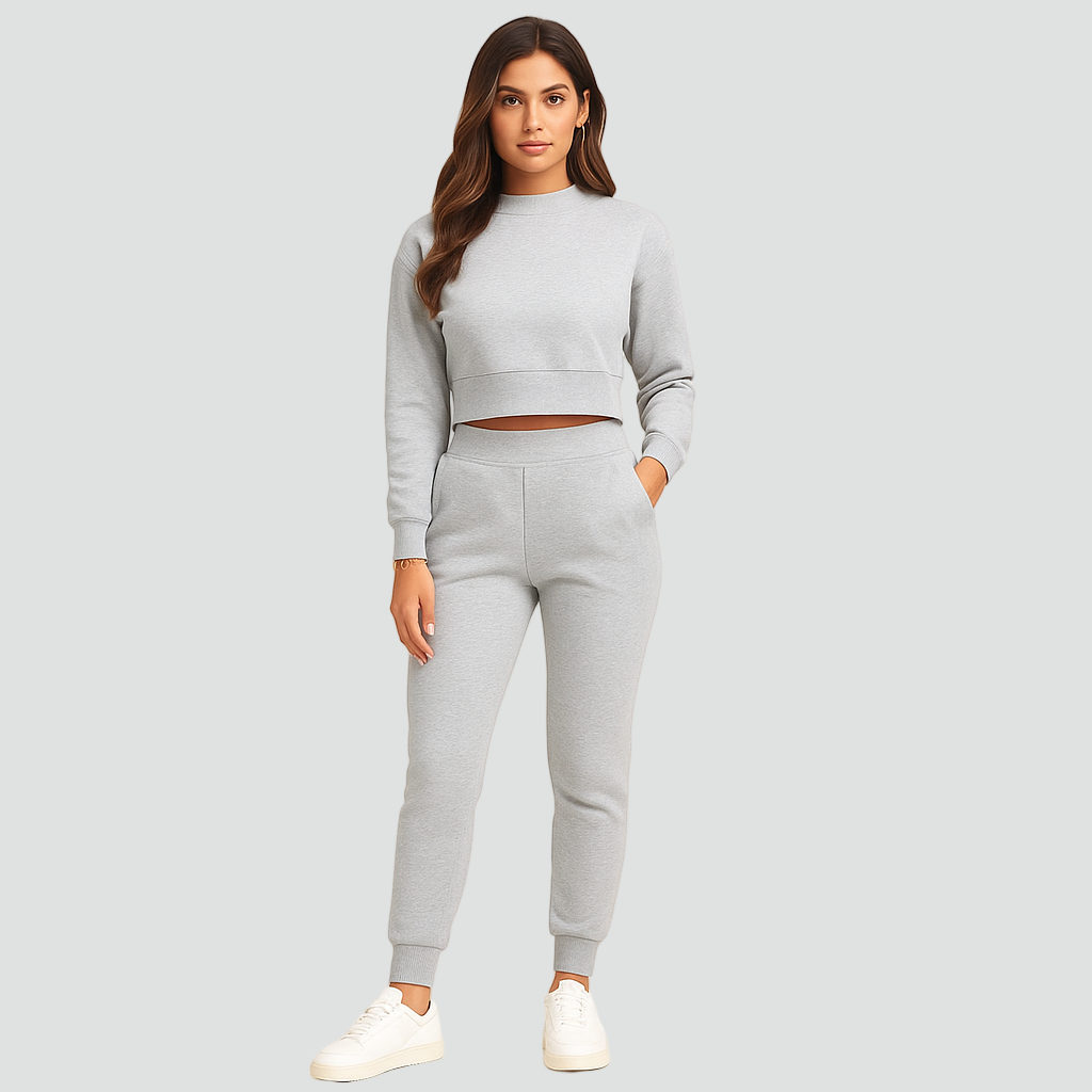 Komplet dresowy damski z krótkim swetrem i spodniami jogger