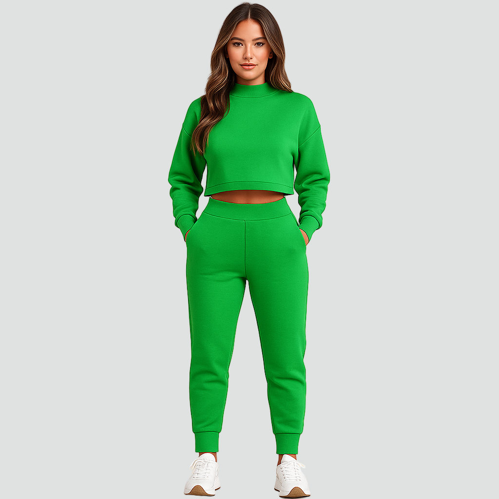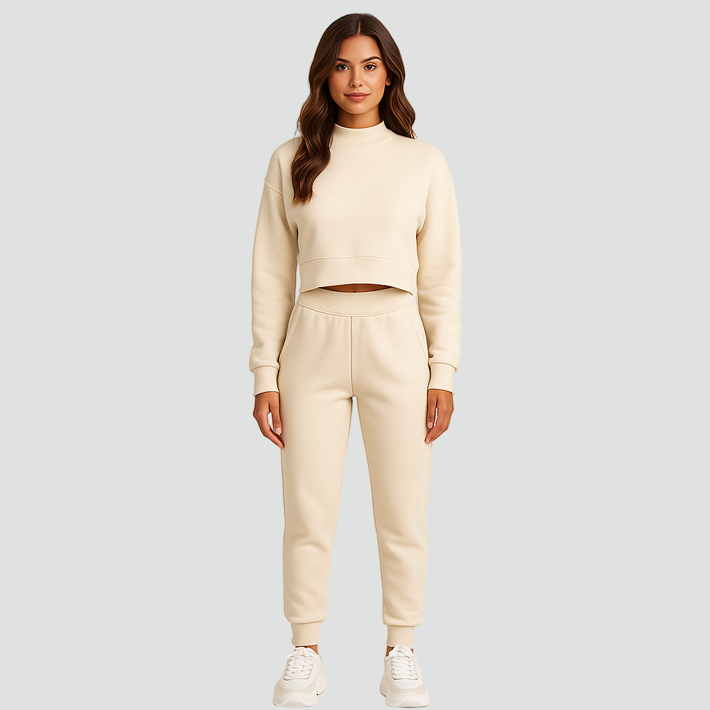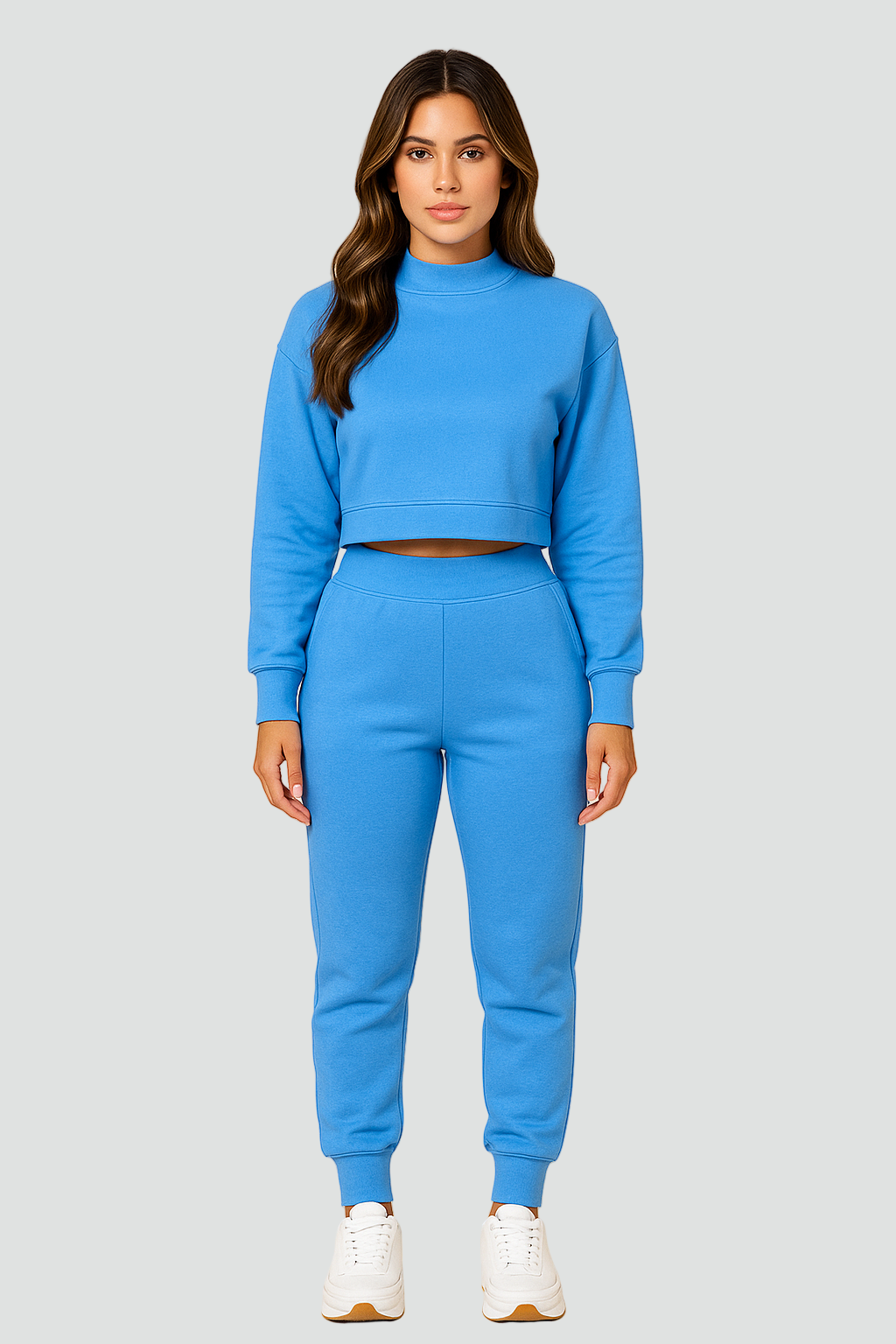 Komplet dresowy damski z krótkim swetrem i spodniami jogger