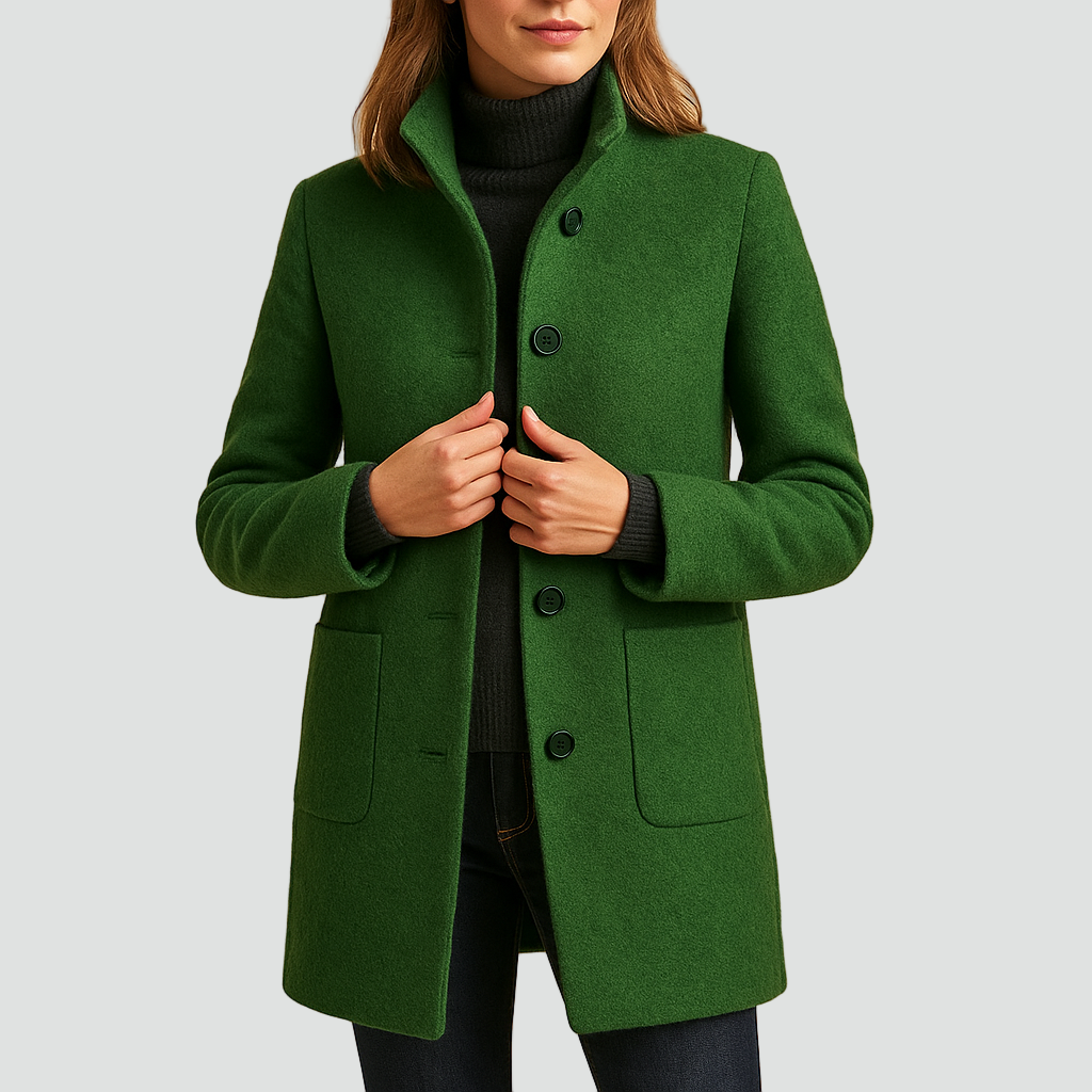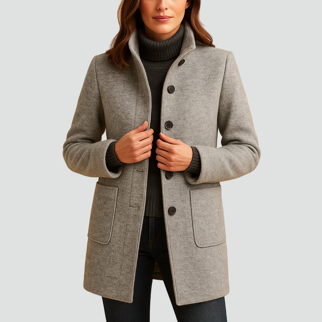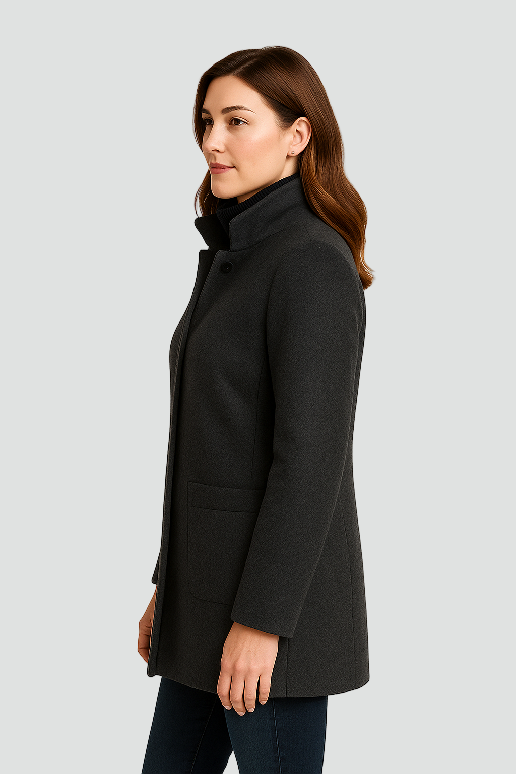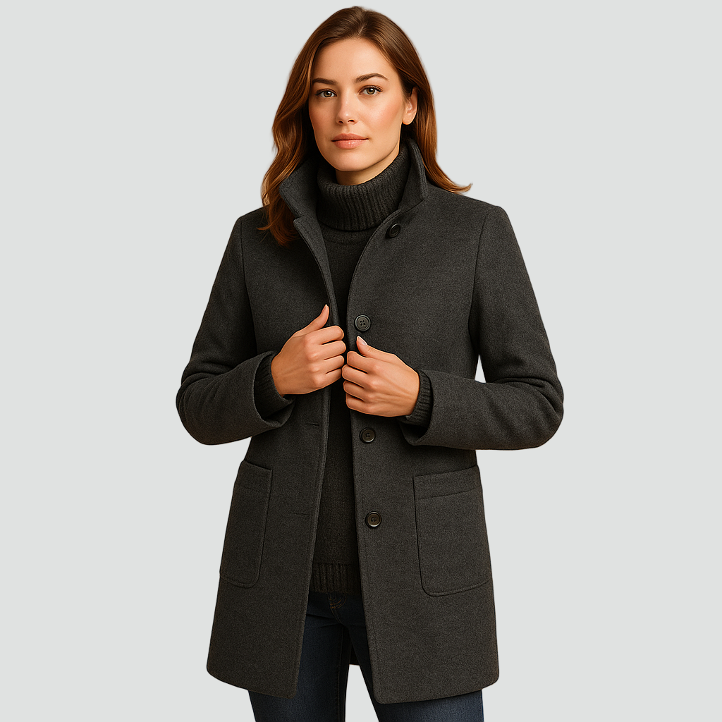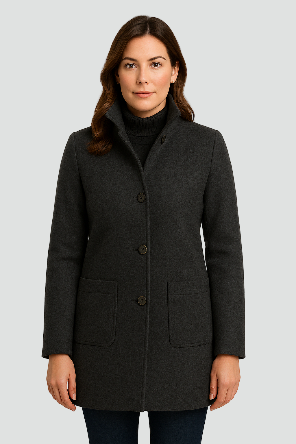 Elegancki, minimalistyczny płaszcz o ponadczasowym kroju. Wykonany z miękkiej tkaniny o strukturze wełny, zapewnia komfort cieplny i doskonały wygląd w chłodniejsze dni. Prosty fason z zapięciem na guziki oraz praktycznymi kieszeniami podkreśla klasyczny charakter modelu. Idealny do pracy, na spotkania lub codzienne wyjścia w eleganckim stylu.